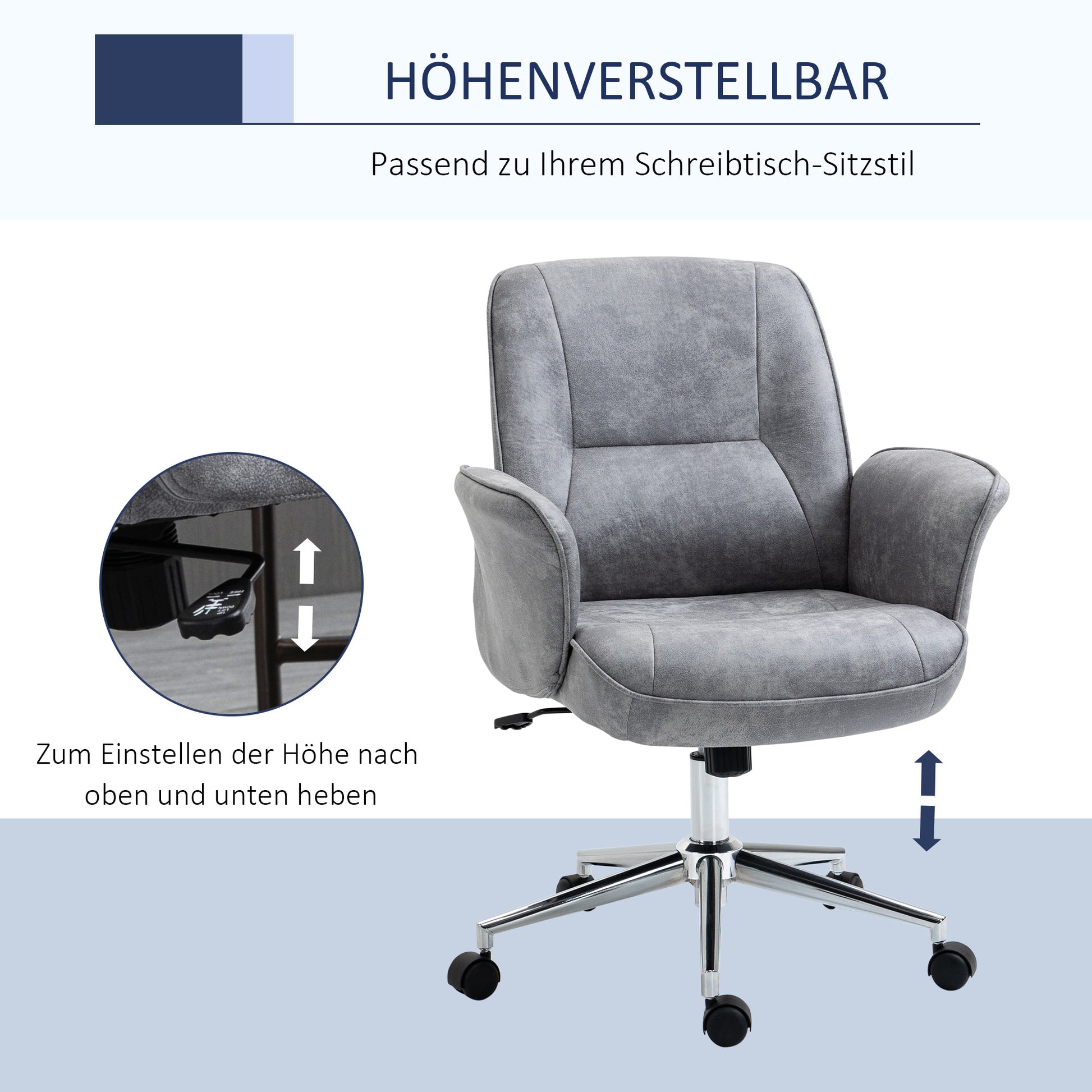 Vinsetto Bürostuhl mit Wippfunktion Schreibtischstuhl höhenverstellbarer Drehstuhl ergonomischer Arbeitsstuhl modern Belastbar bis 120 kg Mikrofaser Hellgrau 67 x 69 x 92-102 cm