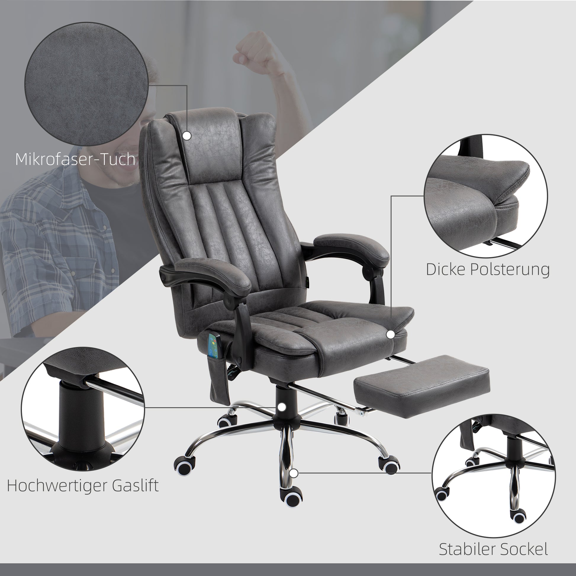 Vinsetto Chefsessel mit Massage- und Wärmefunktion, Fußstütze, verstellbar, bis 120kg, Grau