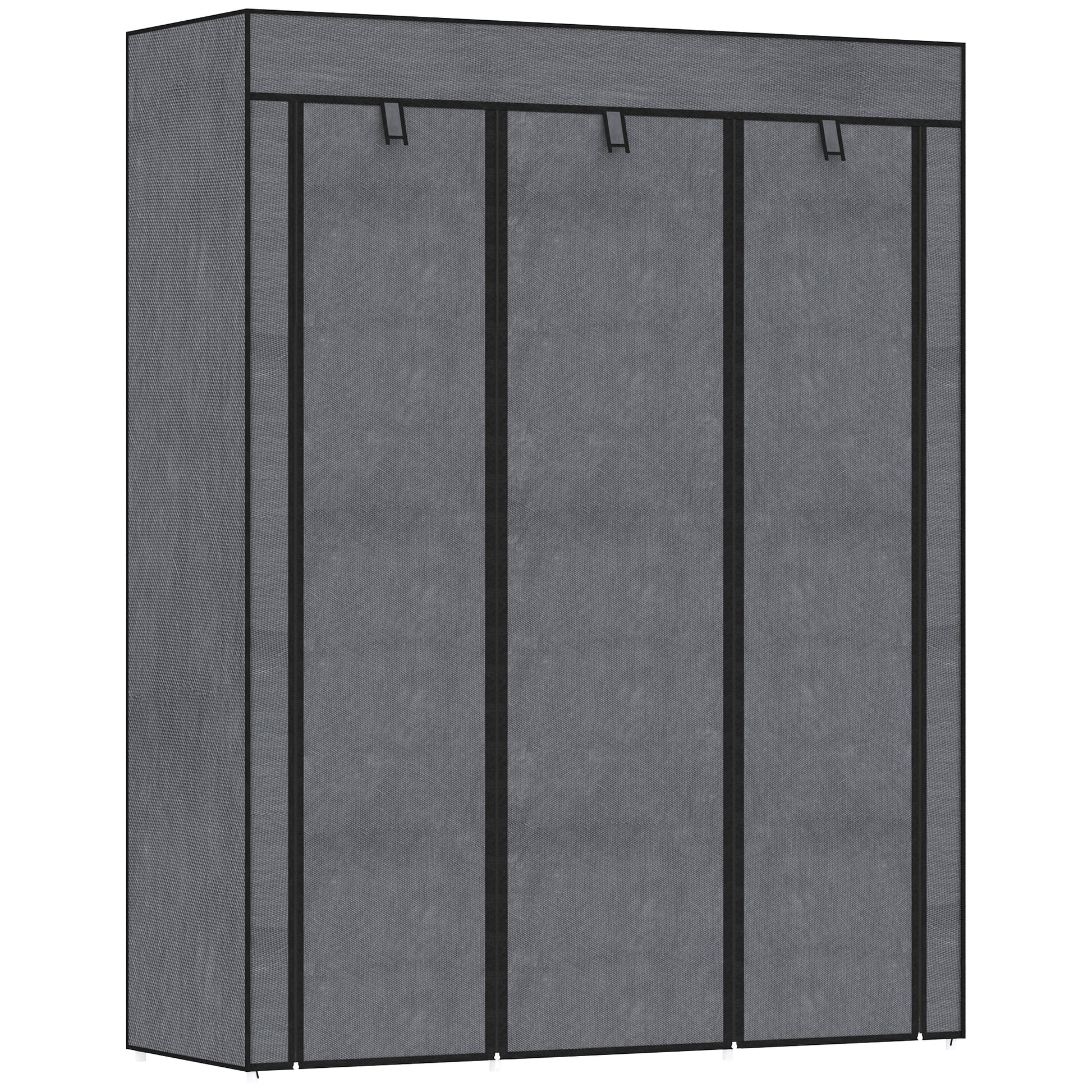 HOMCOM Schrank aus Stoff, Aufbewahrungslösung, 8 Regale, 2 Kleiderstangen, Dunkelgrau
