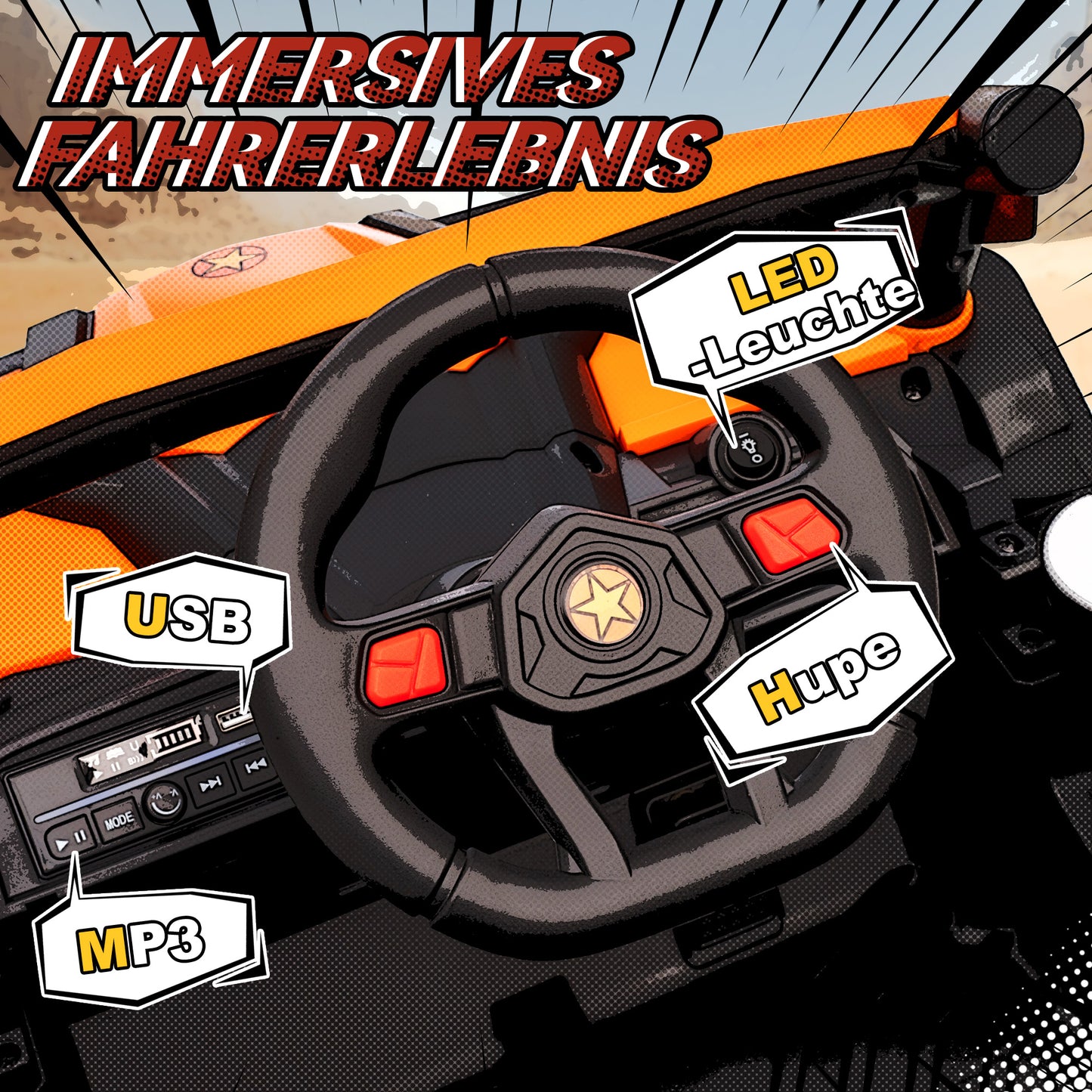 AIYAPLAY 12V Elektroauto für Kinder, Fernbedienungsfunktion, Gurt, Hupe, LED-Lichter, USB-Port, für 3-5 Jahre, Orange