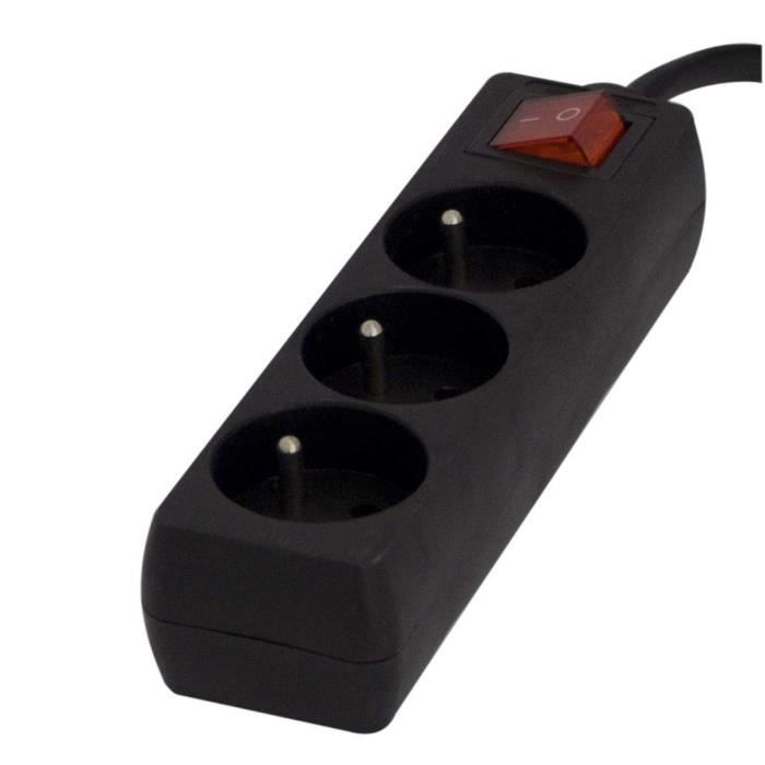 Chacon Multiprise block with switch 3 sockets 16A 1.5m black