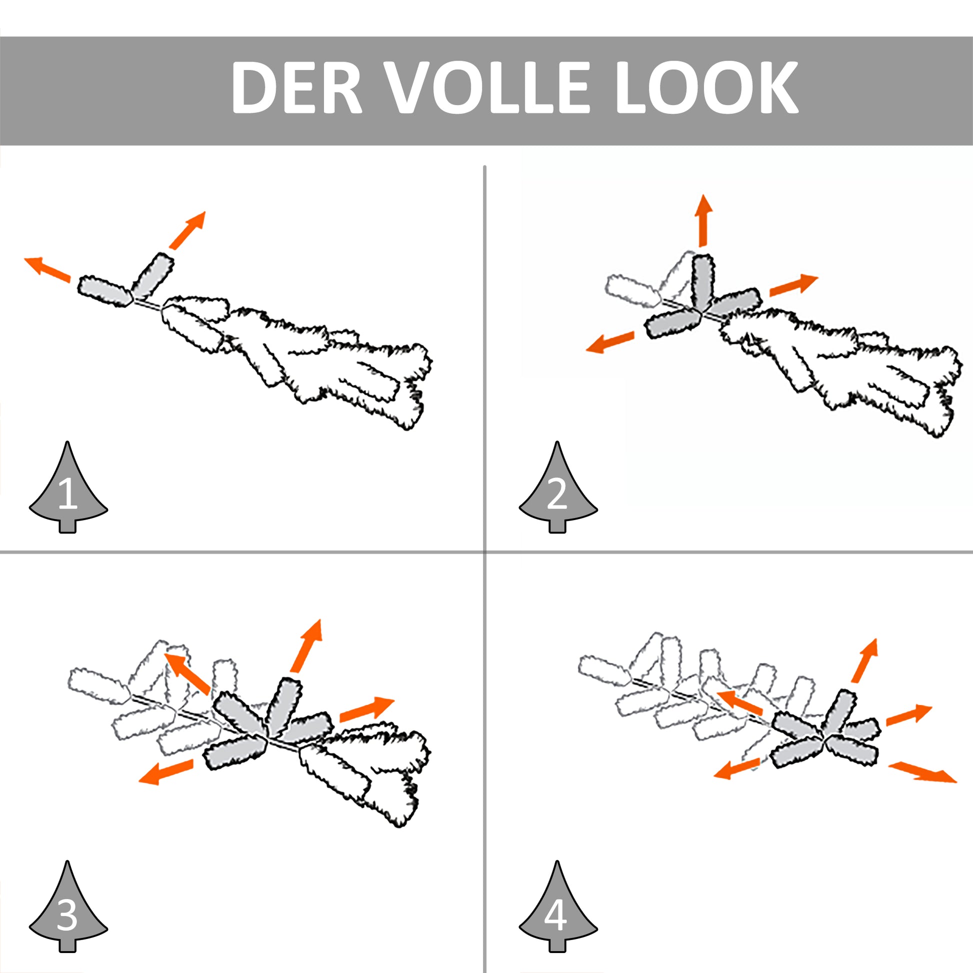 - ✔ HINWEIS:Um ein vollständiges Erscheinungsbild zu erhalten, spreizen Sie bitte alle einzelnen Spitzen. Wir empfehlen Ihnen, sich 10-15 Minuten Zeit zu nehmen, um den Baum zu formen