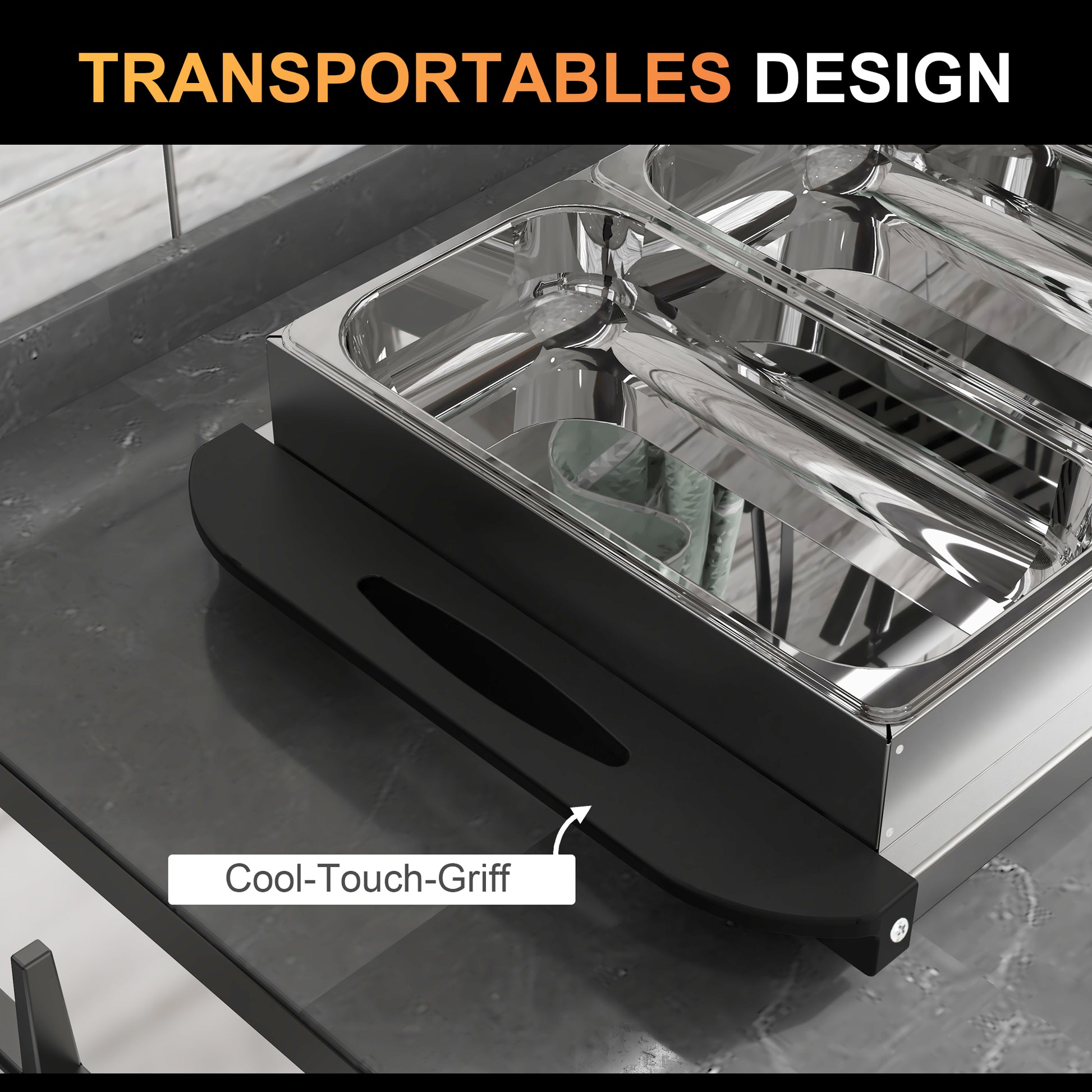 HOMCOM 2-in-1 Buffetwärmer 6,8L Warmhalteplatte 300 Watt Edelstahl Speisewärmer Silber