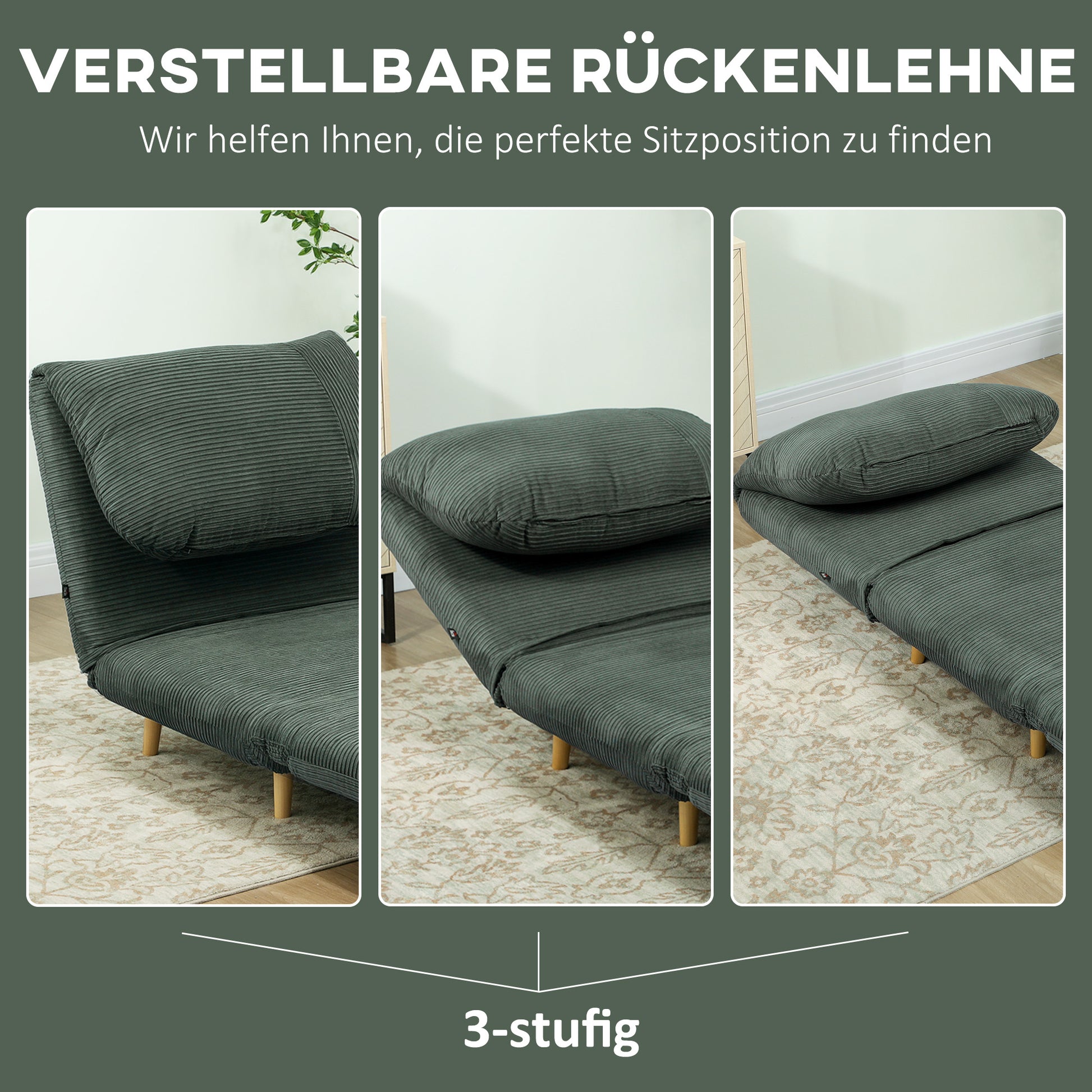 HOMCOM 2-in-1 Schlafsessel Gästebett, verstellbare Kopfstütze Cord-Optik 82 cm x 8 cm x 83 cm Grün