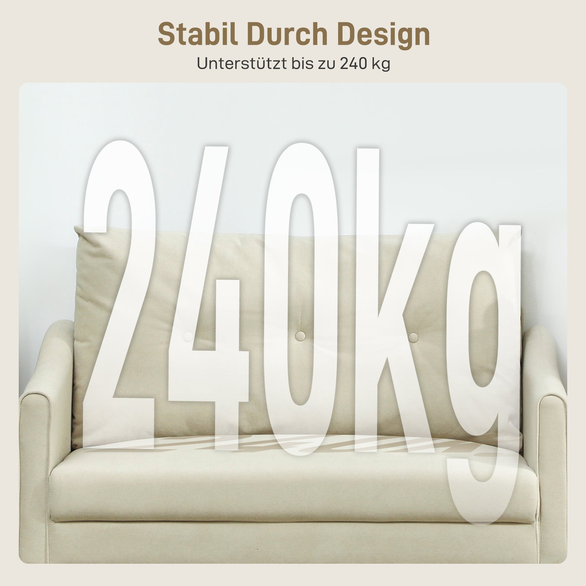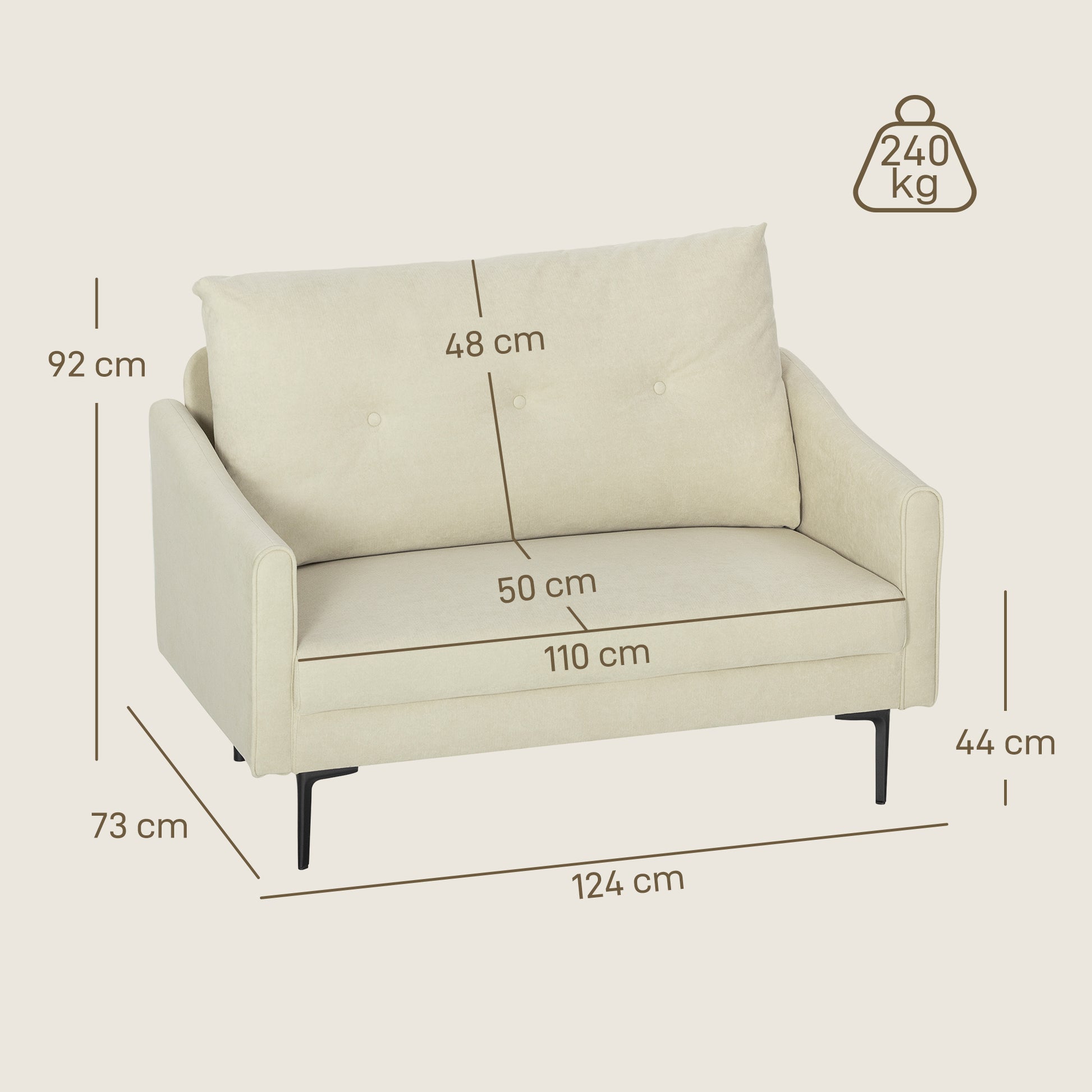 HOMCOM 2-Sitzer-Sofa mit Schaumstoff-Polsterung und Stoffbezug, für Wohnzimmer, Schlafzimmer, Metallrahmen, Cremeweiß