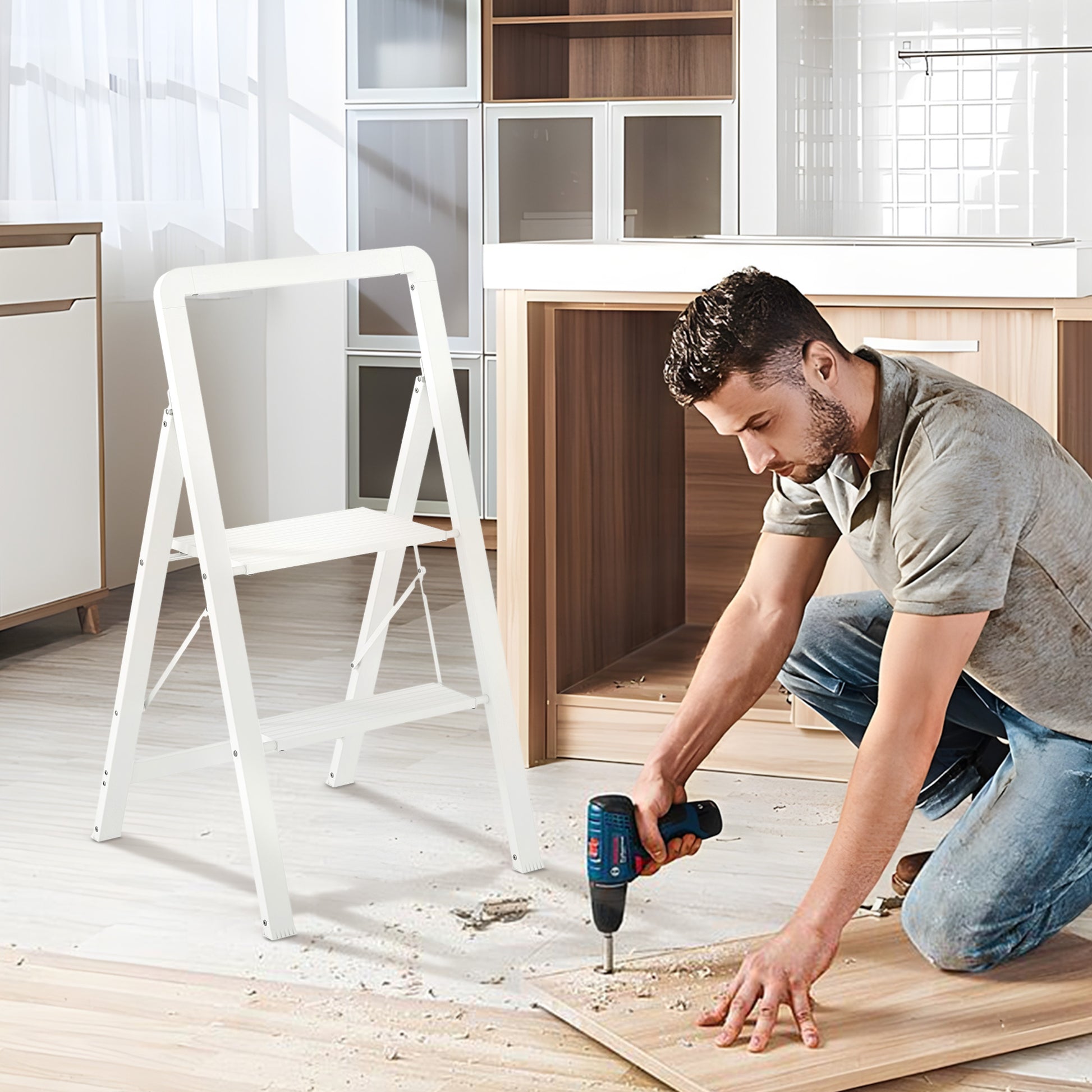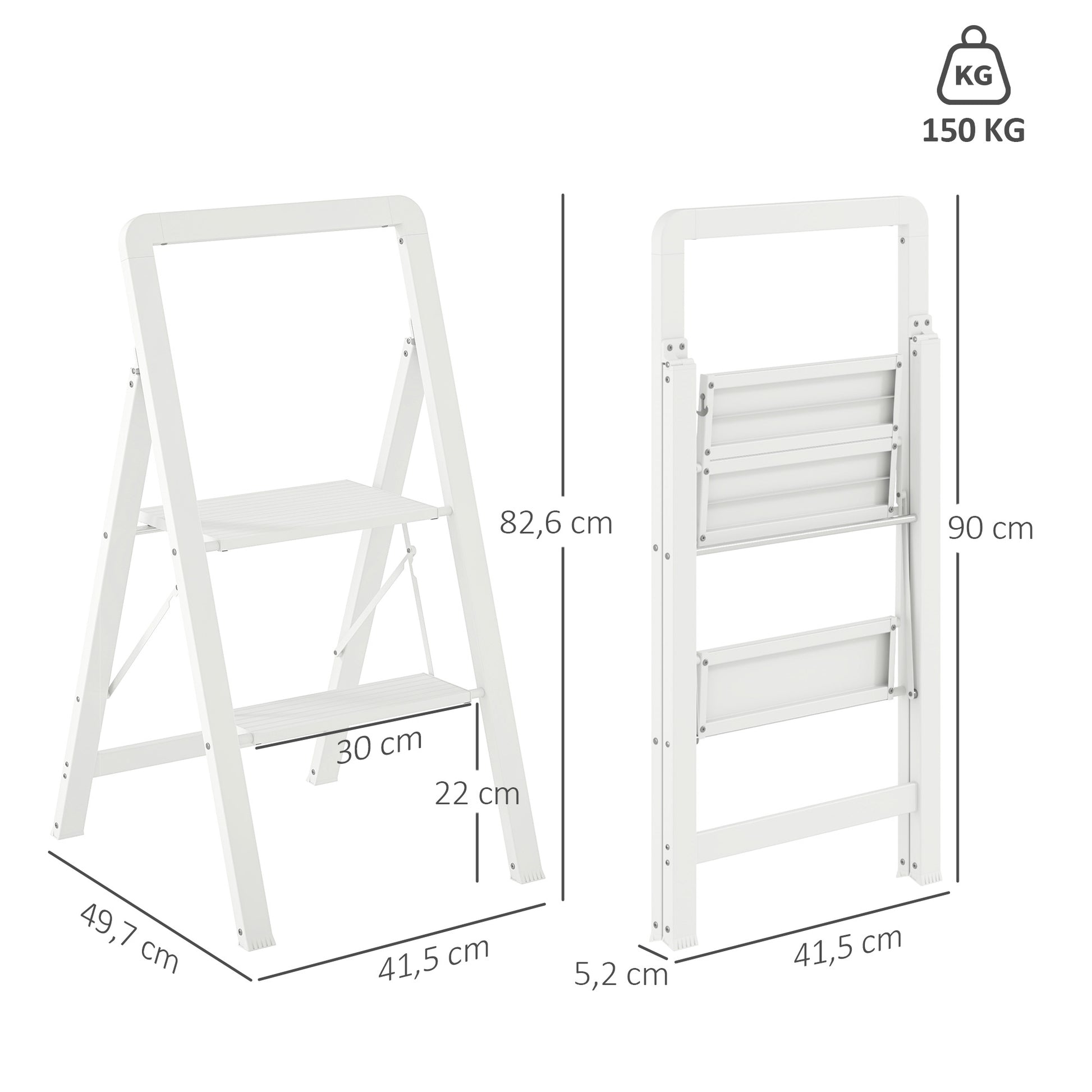 HOMCOM 2-stufige Trittleiter, Aluminum faltbar, rutschfeste Plattform, Weiß
