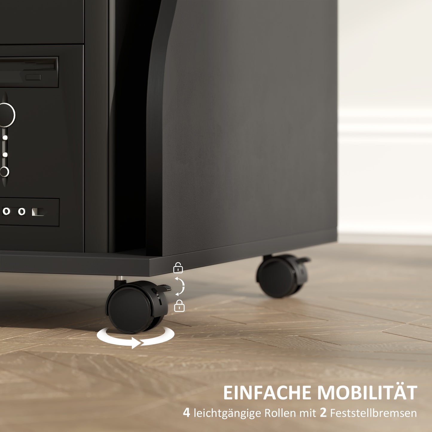 HOMCOM Computertisch mit Rollen, Schreibtisch mit Stauraum, 80 x 48 x 75 cm, Schwarz