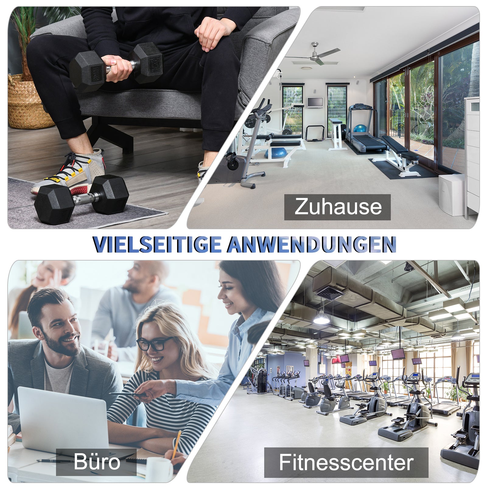 Diese Sechseck-Hantel mit Gummi ist perfekt für Ihr Fitness-Regime, geeignet für Haus, Fitnessstudio und Büro Übung. Jede Kurzhantel ist mit Metall und Gummi gebaut, die langlebig ist und nicht leicht, den Boden zu kratzen. Die Rändelung garantiert Ihre Sicherheit, wenn Sie abwechselnd Hantelcurls, Kopfzucken, Kurzhantel-Trizepsrückstoß usw. machen. Dieses Hanteln Set ist ein idealer Weg, um Übungsroutine mit den Kurzhanteln zu machen.