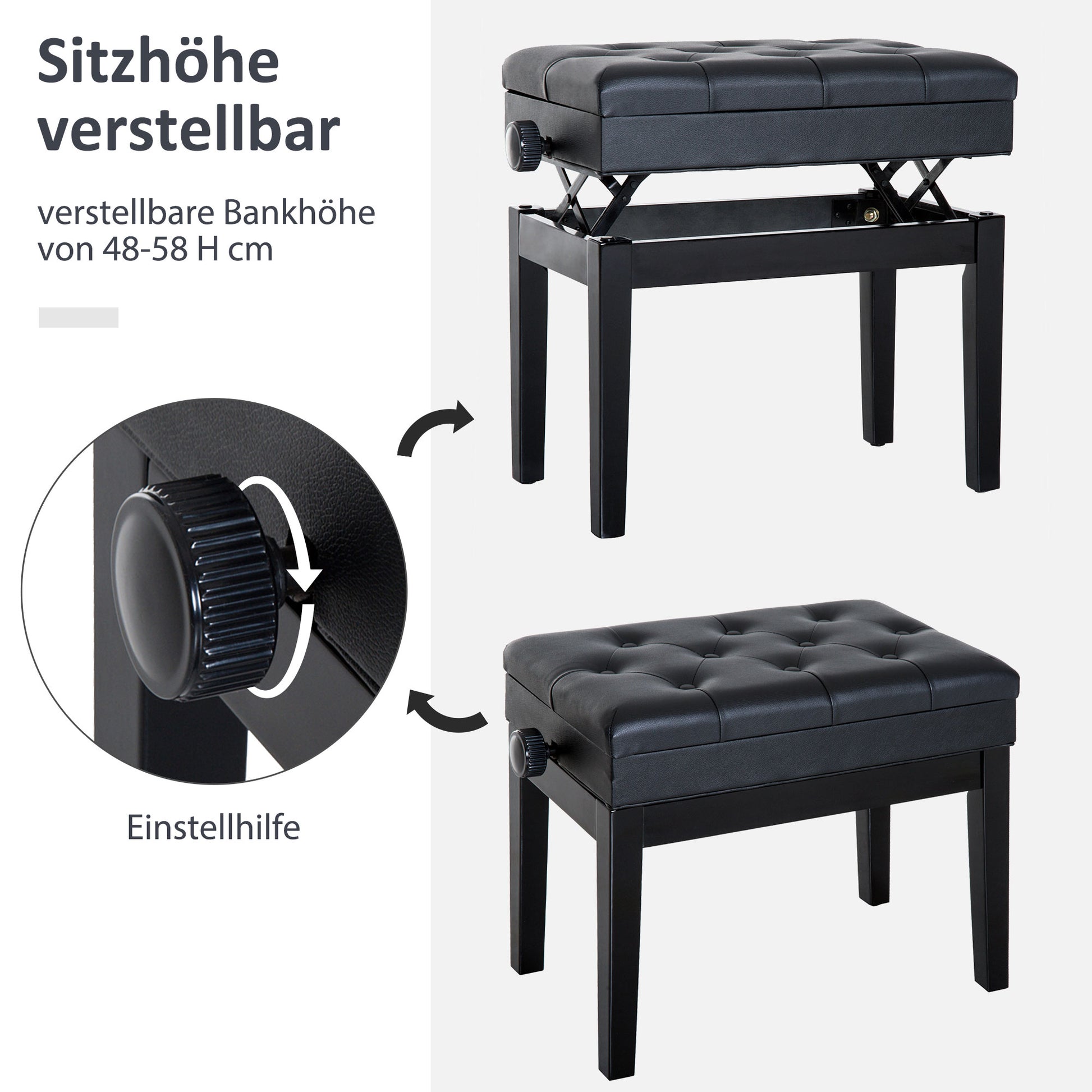 HOMCOM Klavierhocker Höhenverstellbar Klavierbank mit Verstecktem Stauraum, Pianobank mit Kunstleder Kissen Keyboardbank für Piano Keyboard 54,5 x 33 x 48-58 cm Schwarz