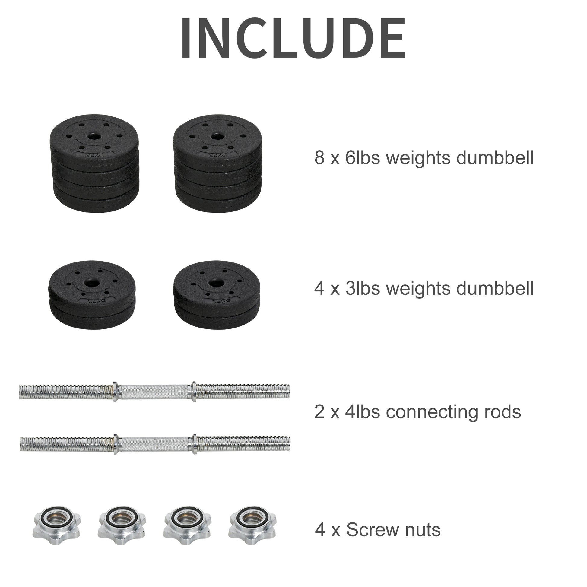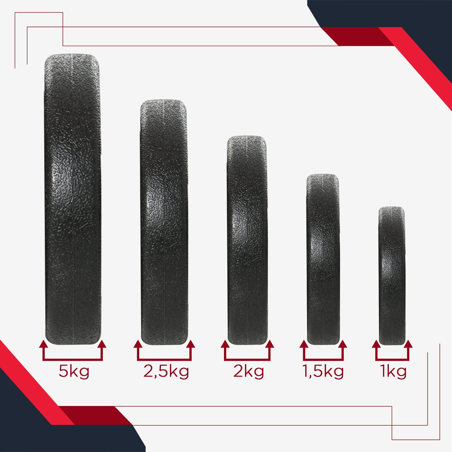 Unser Hantelset von HOMCOM wird mit unterschiedlich großen Hantelteilen geliefert, so dass Sie das Gewicht der Hanteln an Ihre Bedürfnisse anpassen können. Das Paar enthält 8 x 2,5KG, 4 x 1,5KG Hantelscheiben und 2 x 2KG Verbindungsstangen. Es wird Ihnen helfen, Ihre Arme, Schultern und den Rücken zu trainieren und Muskeln aufzubauen. Mit diesem Hantelset können Sie zu Hause, im Büro oder überall trainieren.