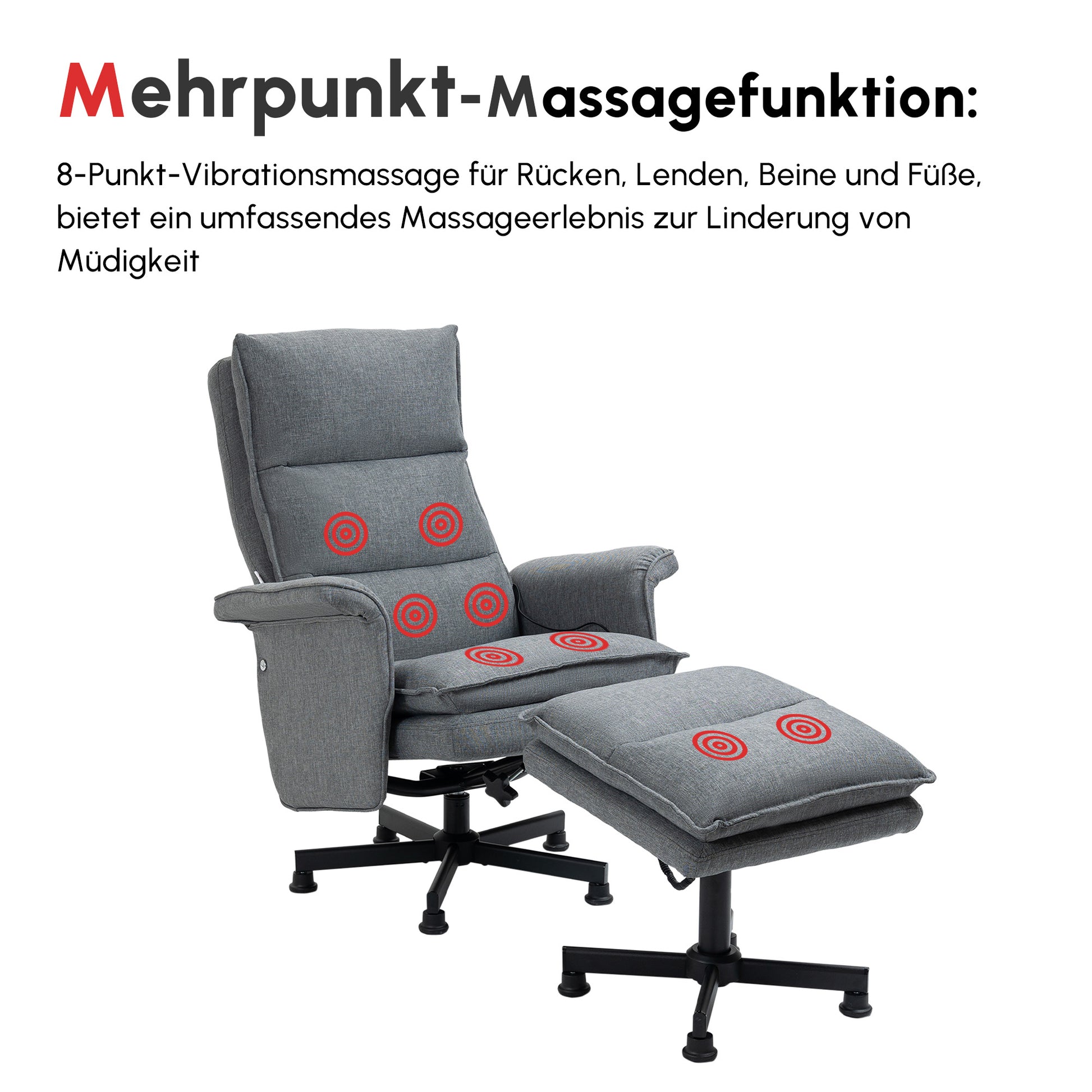 - ✔ 8-Punkt-Vibrationsmassage für den Rücken- und Lendenbereich, Beinbereich und im Fußbereich