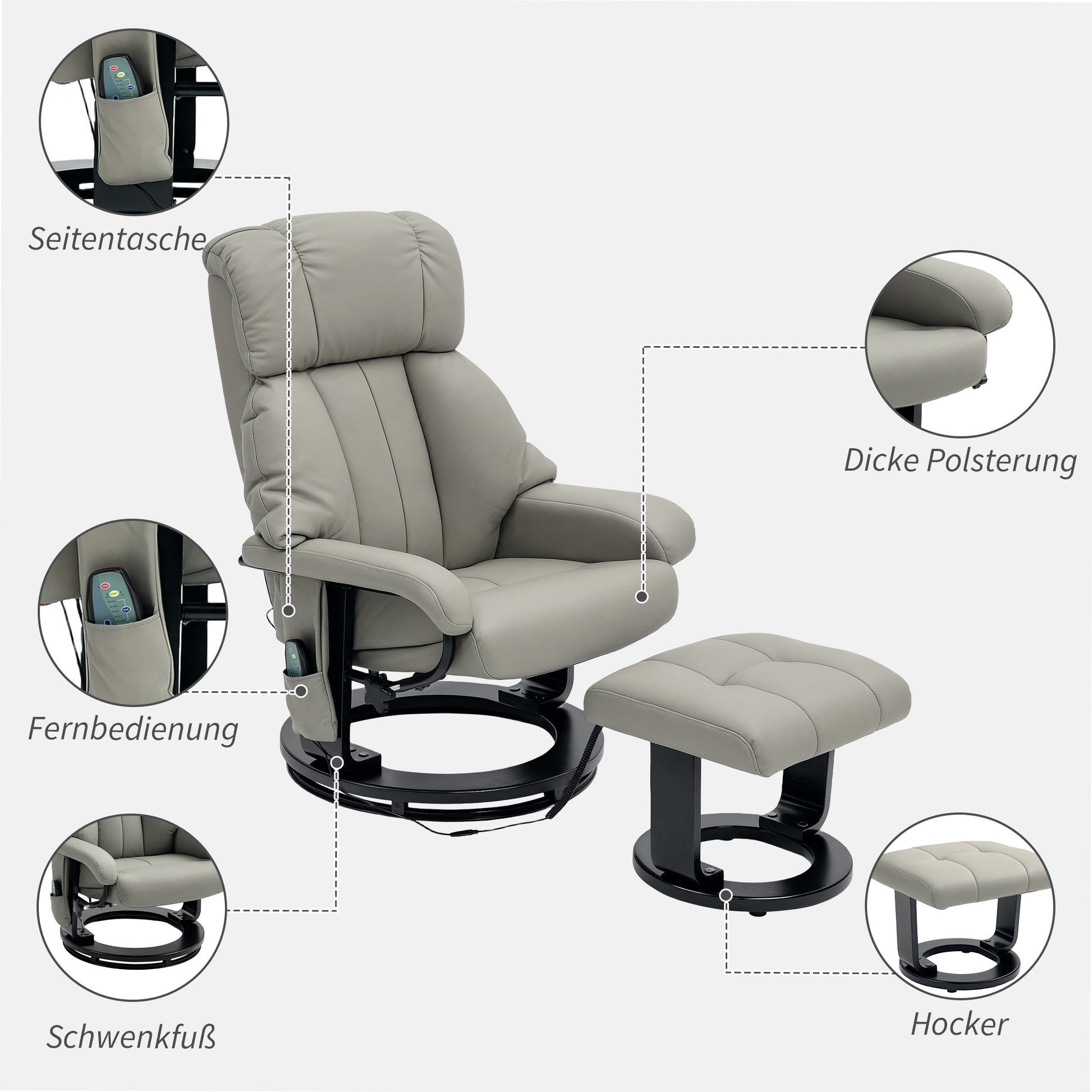 HOMCOM Relaxsessel Massagefunktion Fernsehsessel mit Seitentasche, Kunstleder, Grau