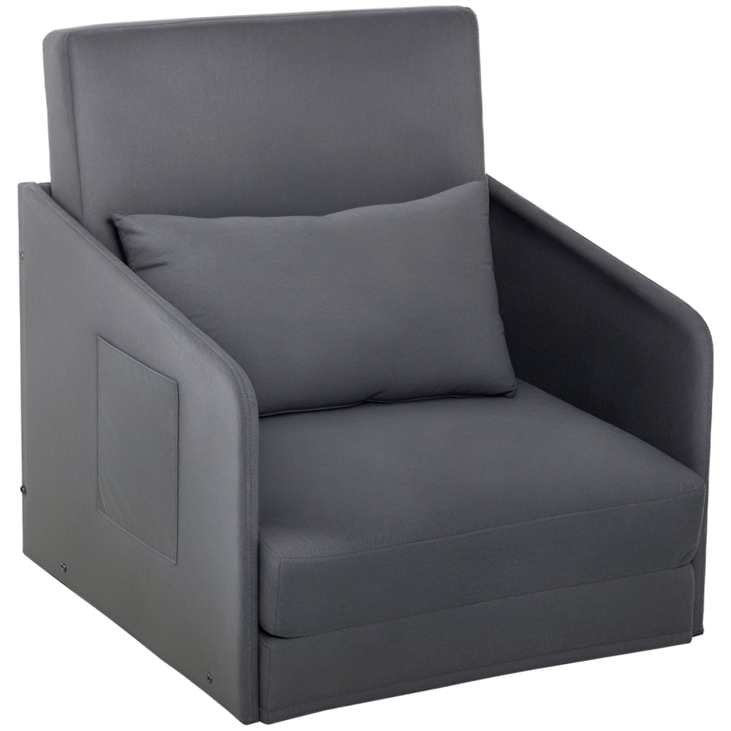 HOMCOM Schlafsofa Sofabett Einzelsofa Waschbarer Bezug 2 Seitentaschen Kissen Metall Grau 70 x 76 x 77 cm