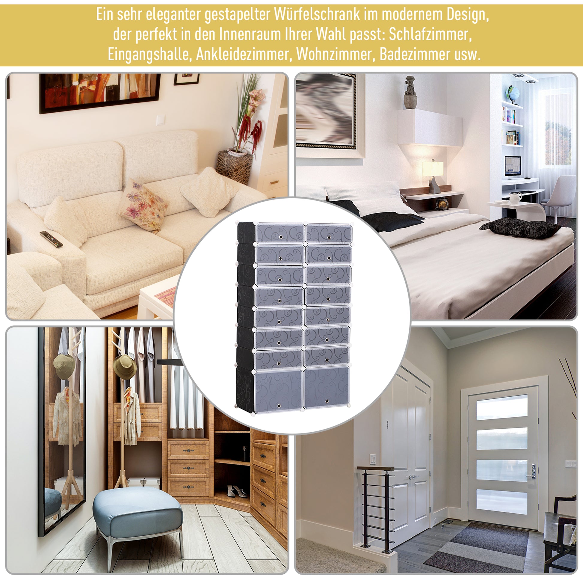 HOMCOM Schuhboxen 16er Set Schuhkarton stapelbar Schuhorganizer Schuhaufbewahrung Aufbewahrungsboxen Regalsystem mit Tür, Schwarz + Weiß
