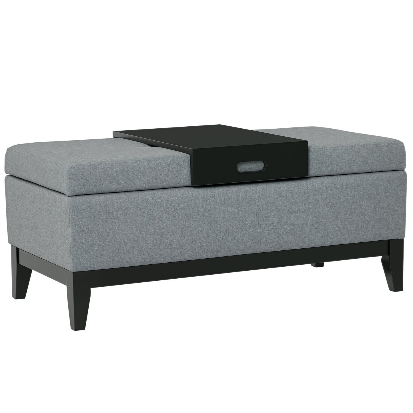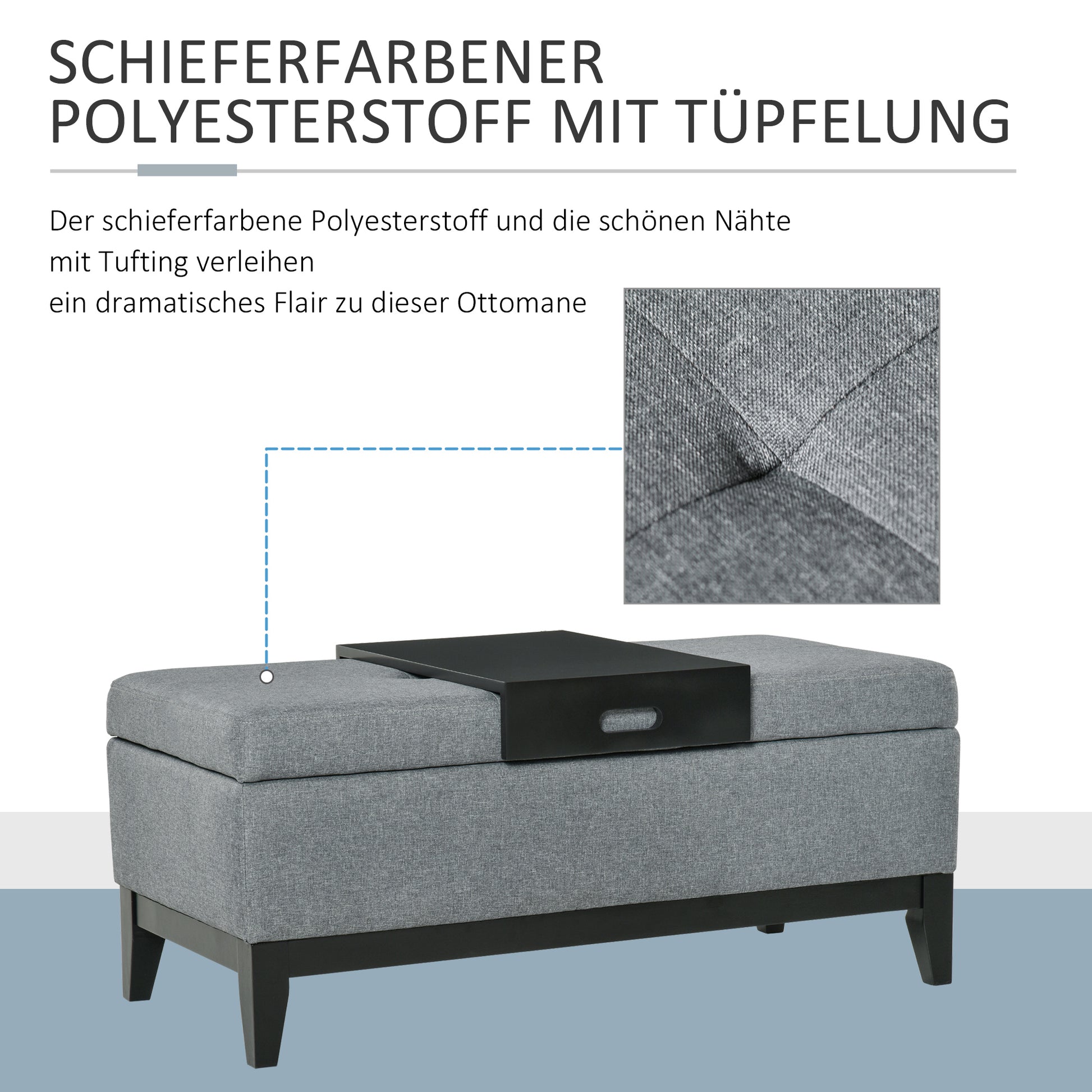 HOMCOM Sitzbank mit Stauraum, abnehmbarem Tablett Polsterbank mit Leinenoptik, Sitztruhe mit Holzbeine, Truhenbank für Wohnzimmer Schlafzimmer Flur 107 x 50 x 44 cm, Dunkelgrau