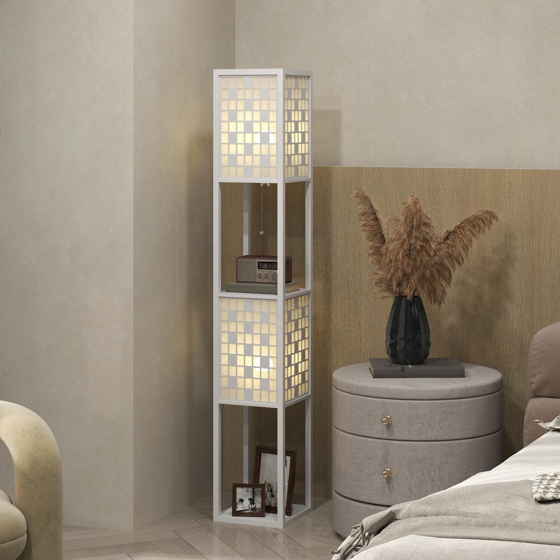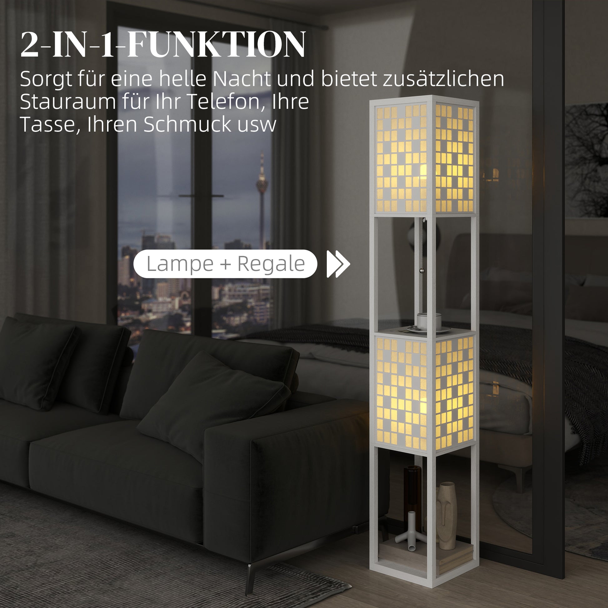 HOMCOM Stehlampe, Gittermuster, 2-Ebenen-Regale, für verschiedene Glühbirnen, Weiß