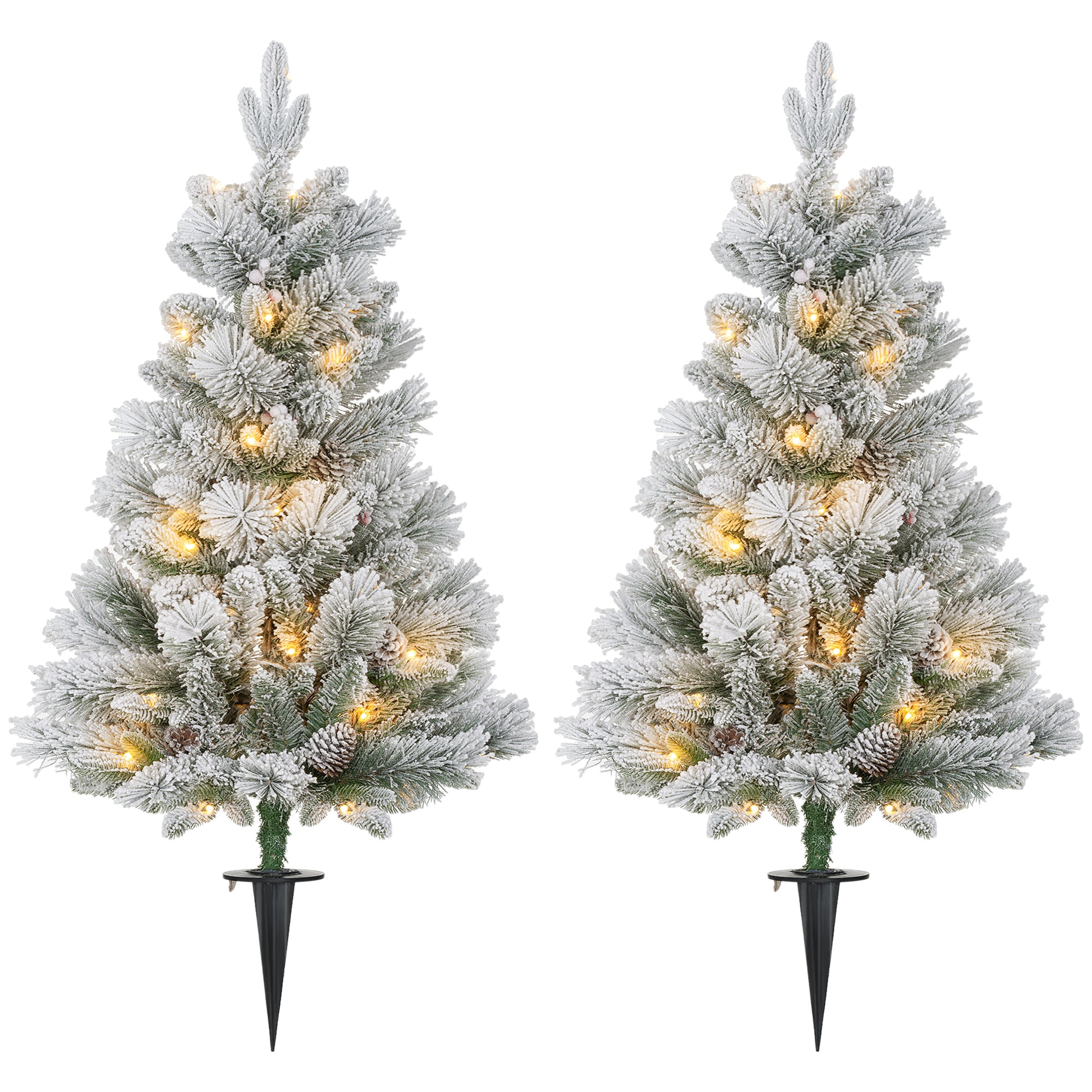 HOMCOM Weihnachtsbaum mit LED-Beleuchtung, 2er-Set, 107 cm, Tannenzapfen, rote Beeren, feuersicher, Grün/Weiß