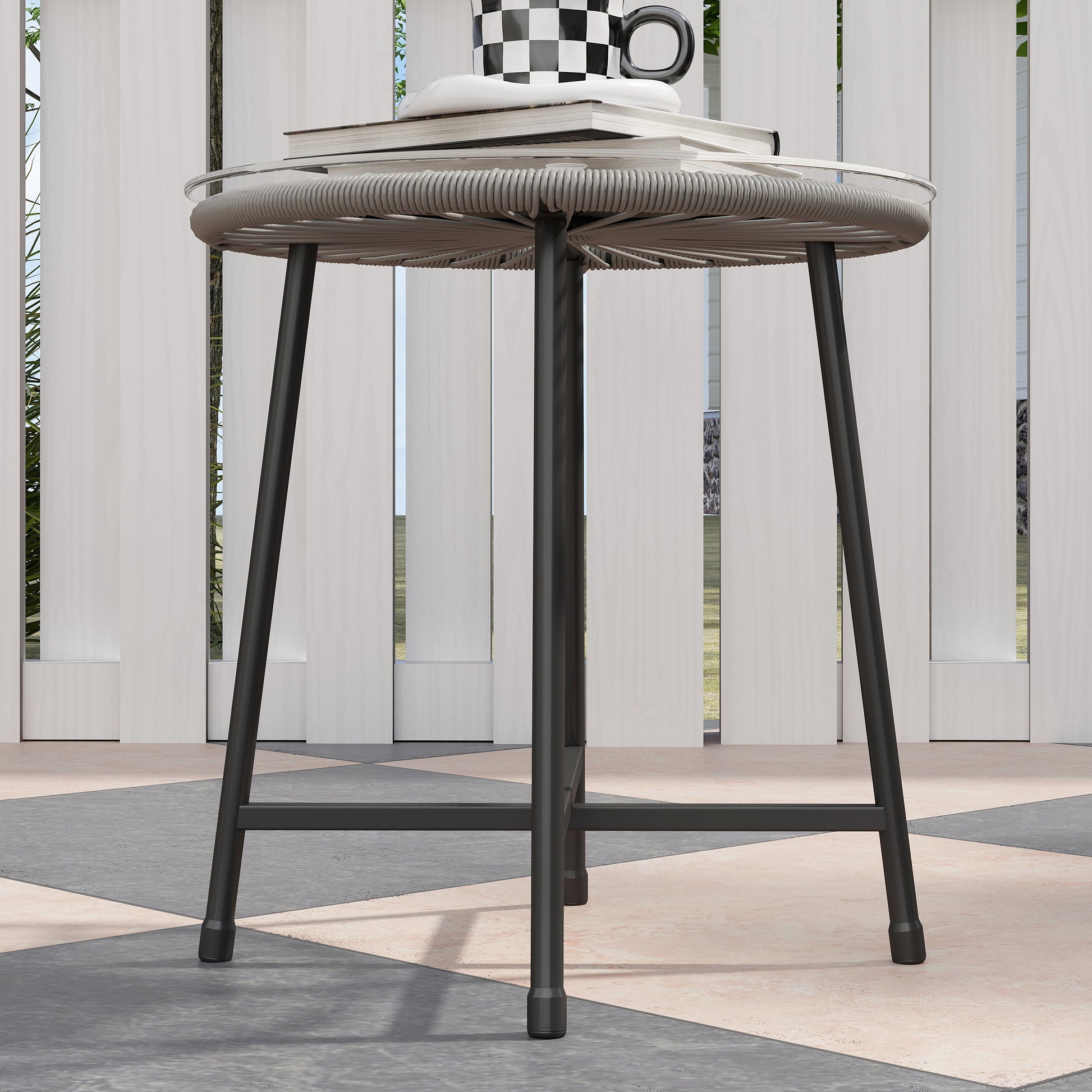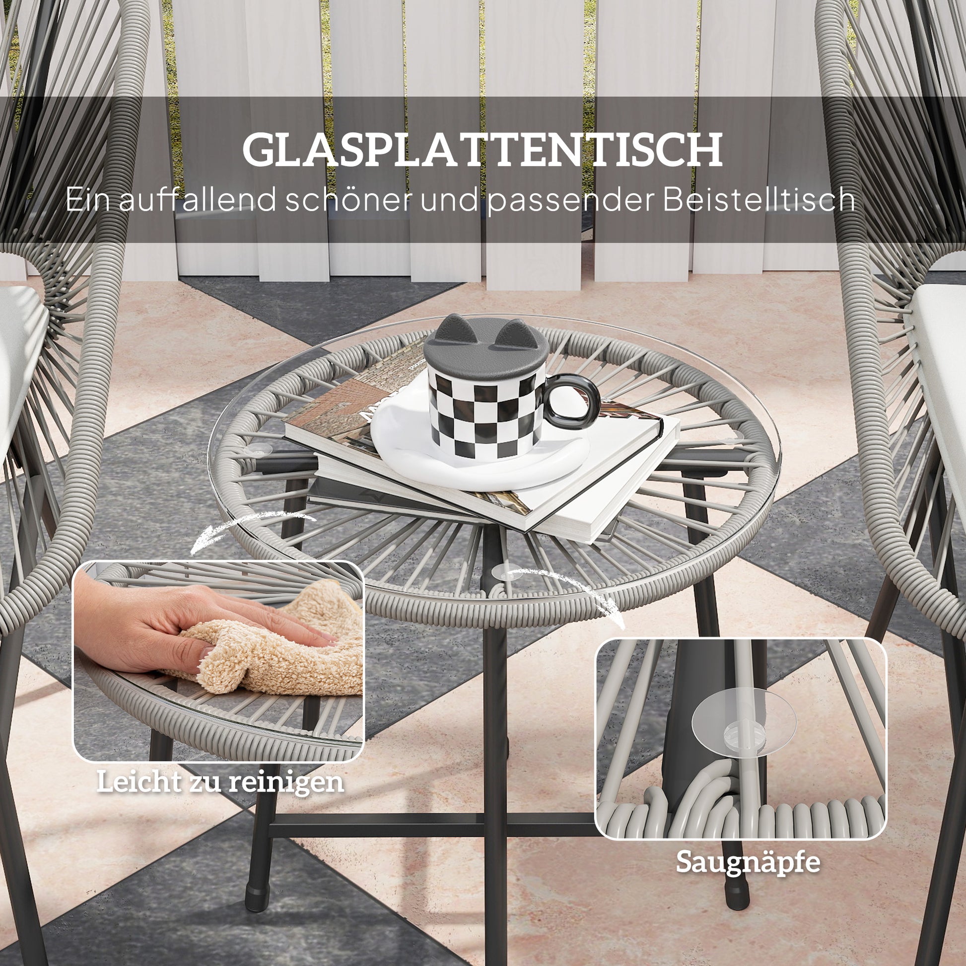Outsunny 3-teiliges Outdoor-Möbelset, 1 Tisch, 2 Stühle, Rattan-Geflecht, Stahlrahmen, Kaffeetisch mit Glasplatte, Dunkelgrau