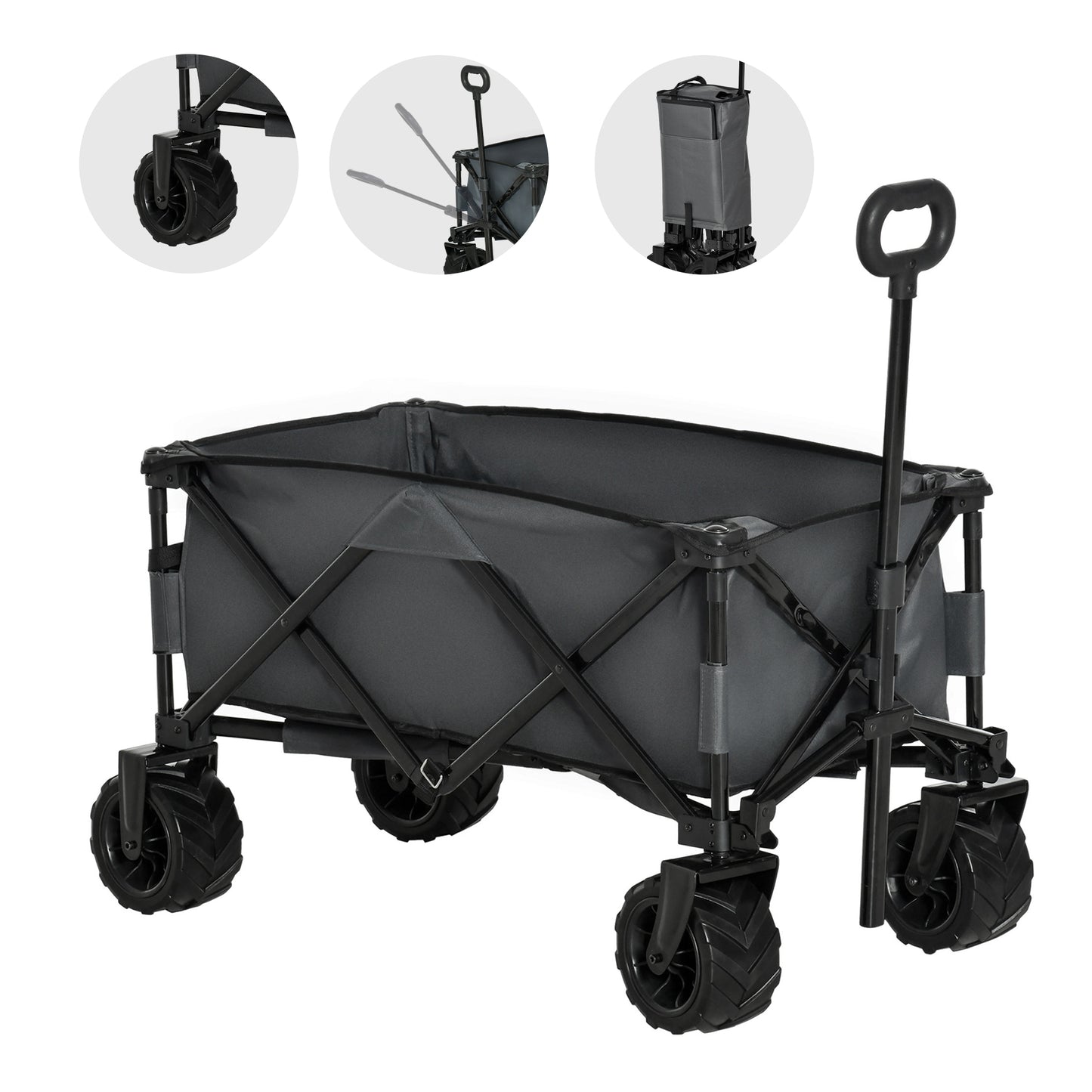 Outsunny Bollerwagen Faltbarer Handwagen 360° Gartenwagen Transportwagen mit Teleskop Griff Verstellbarer Griffhöhe Strandwagen bis 70 kg Tragkraft Metall Oxford Dunkelgrau 108 x 55 x 59-89 cm