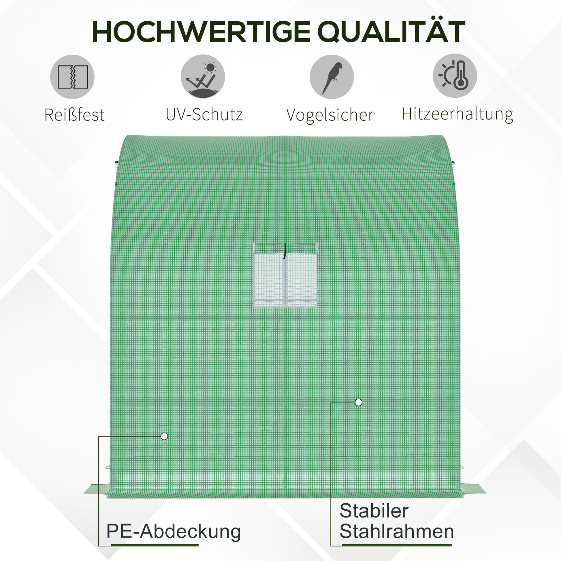 - ✔ Verwenden Sie die aufrollbaren Fenster für einen Blick hinein und, um die Feuchtigkeit im Inneren zu regulieren