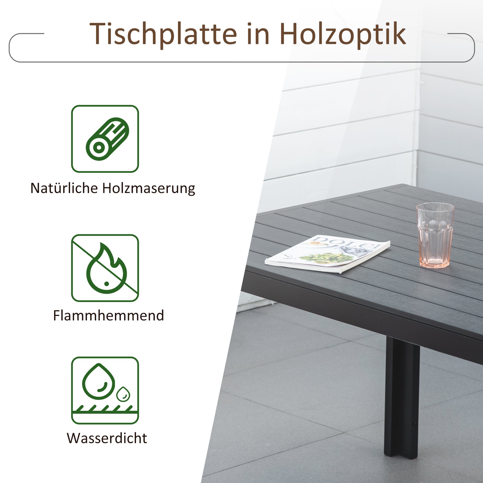 Outsunny Gartentisch Kunststoff 190 x 84,5 x 72 cm Wetterfest, Holz Optik, Holzstrukur, rutschfest Buffettisch Campingtisch Balkontisch Terrassentisch Outdoor Esstisch für Garten, Balkon Schwarz