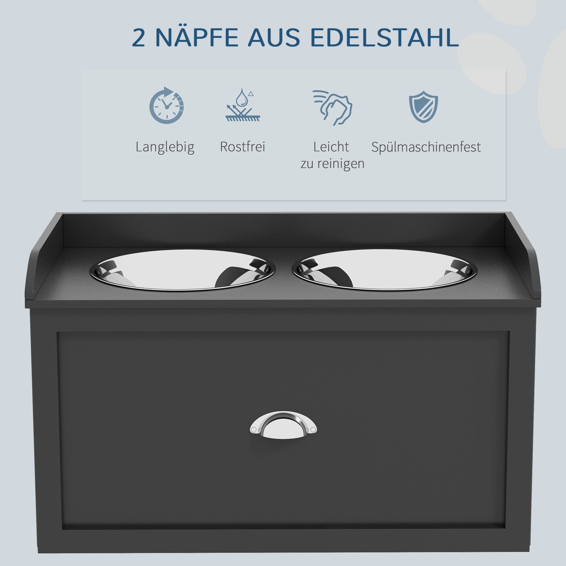 PawHut Futterstation, 2 Fressnäpfe je 2 Liter, Edelstahl, mit Schublade, für große Hunde, schwarz+silber, 60 x 30 x 36 cm