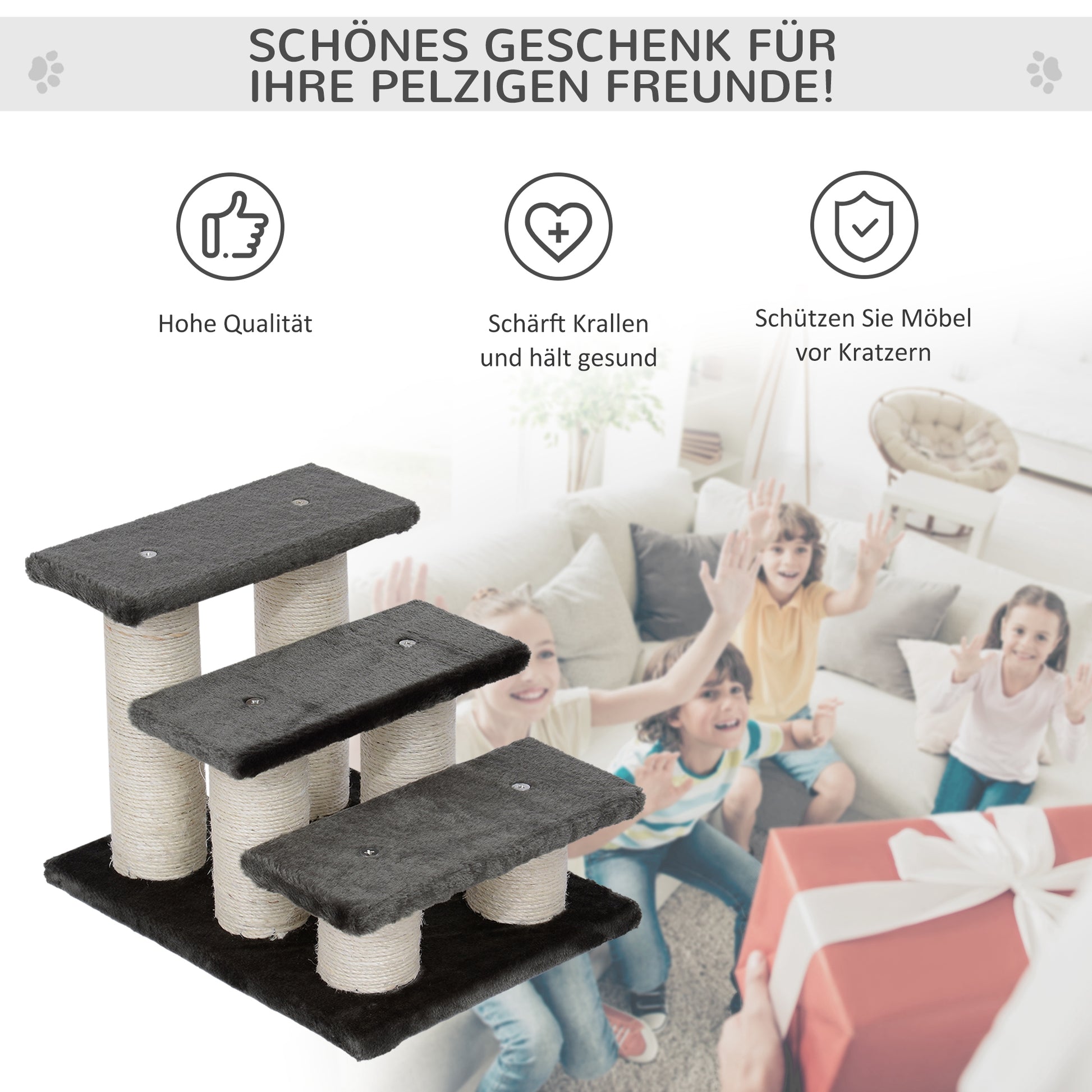 PawHut Hundetreppe 3 Stufen 34 cm Hoch Haustiertreppe für Hunde Katze Katzentreppe mit Kratzstamm Hunderampe Einstiegshilfe für Bett, Sofa, Couch Dunkelgrau