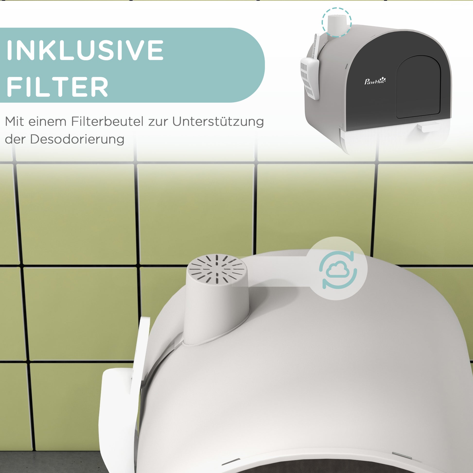 PawHut Katzentoilette mit Deckel, Streuschaufel, Schmutzfangmatte, Kunststoff, Grau/Schwarz