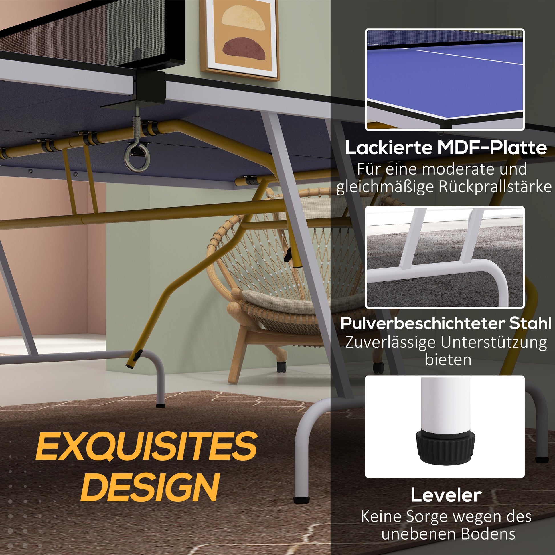 Entdecken Sie den Spaß mit der Tischtennisplatte von SPORTNOW, die sich in vier Teile zerlegen lässt, um sie ultrakompakt zu verstauen. Mit verstellbaren Füßen für eine perfekte Spielfläche, sogar auf unebenen Untergründen. Entfernen Sie das Tischtennisnetz und verwandeln Sie den Tischtennistisch in einen Outdoor Esstisch für spontane Snacks oder in einen Spieltisch für fantastische Gesellschaftsspiele - perfekt für die ganze Familie!
