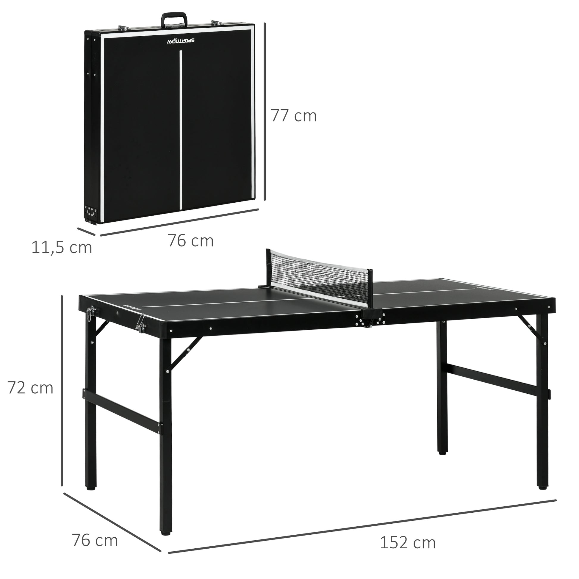 SPORTNOW Tischtennisset, faltbar, Schloss und Griff, Aluminiumrahmen, 152x76x72 cm, Schwarz