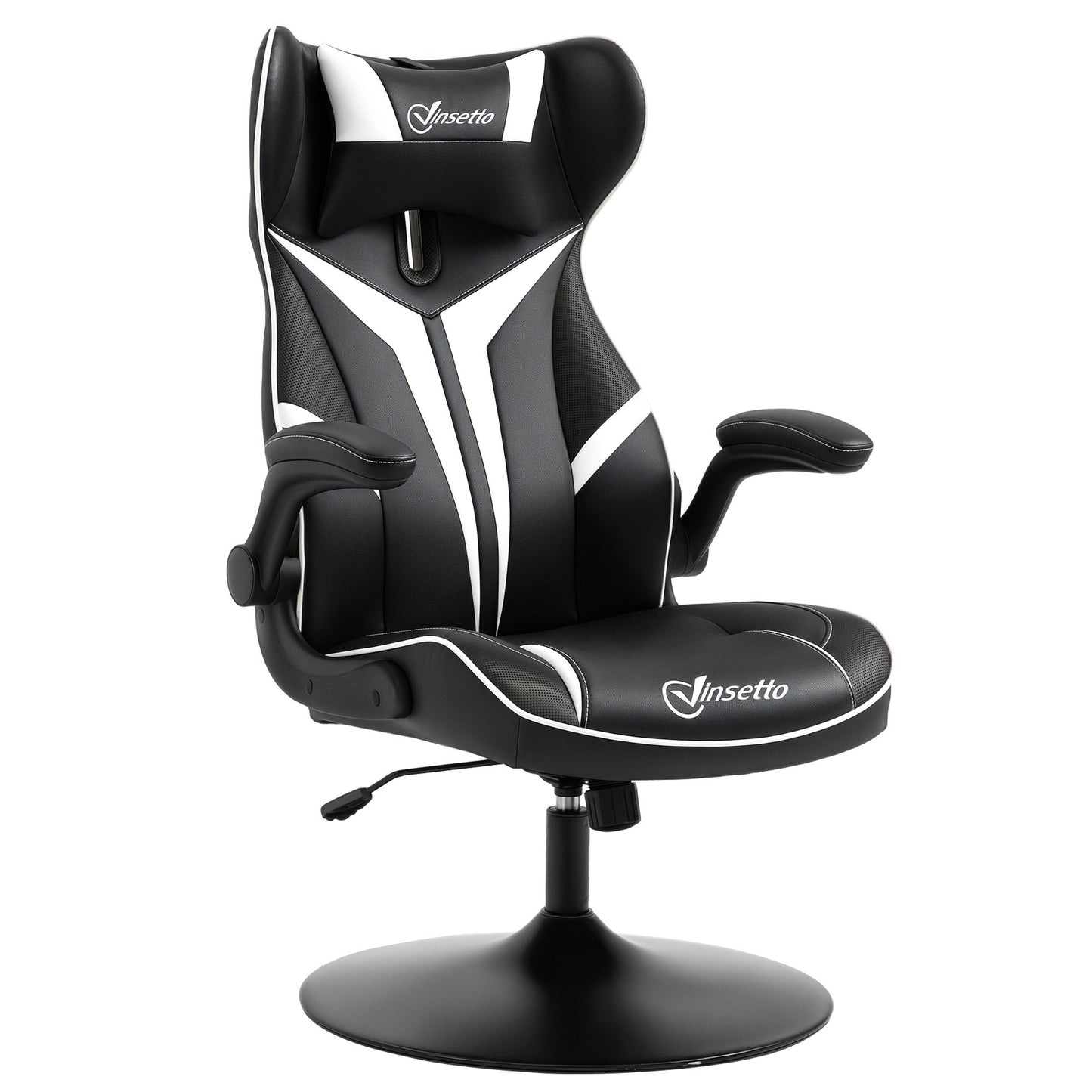 Vinsetto Gaming Stuhl ergonomischer Computerstuhl mit Wippfunktion Drehstuhl höhenverstellbar Stahl Schwarz+Weiß 67 x 70 x 106-112 cm