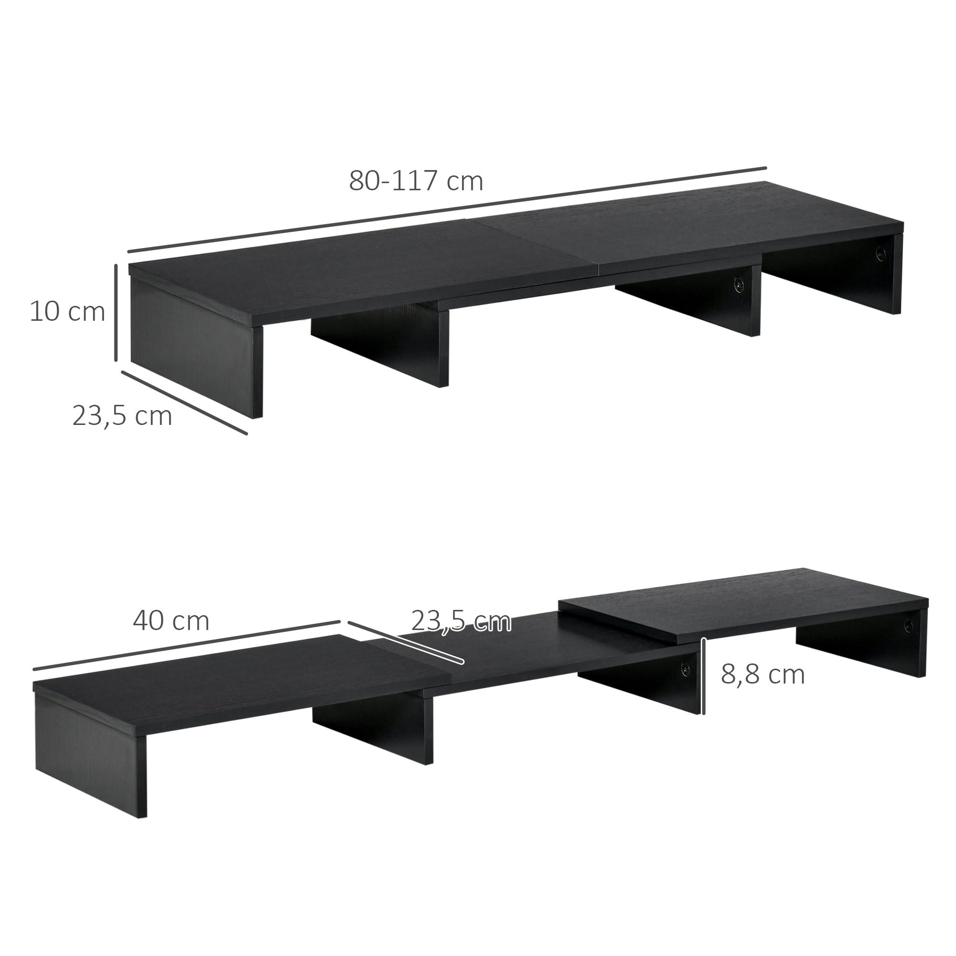Vinsetto Monitorständer Monitor Stand Dual Bildschirmerhöhung Verstellbare Länge und Schwenkwinkel Bildschirmständer für PC Notebook Laptop Drucker 80-117 x 23,5 x 10 cm Schwarz