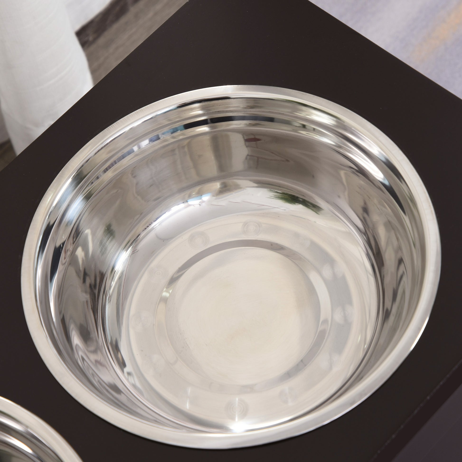 PawHut Futterstation, 2 Fressnäpfe aus Edelstahl, versteckter Stauraum, 60 cm x 30 cm x 41 cm, Schwarz + Silber