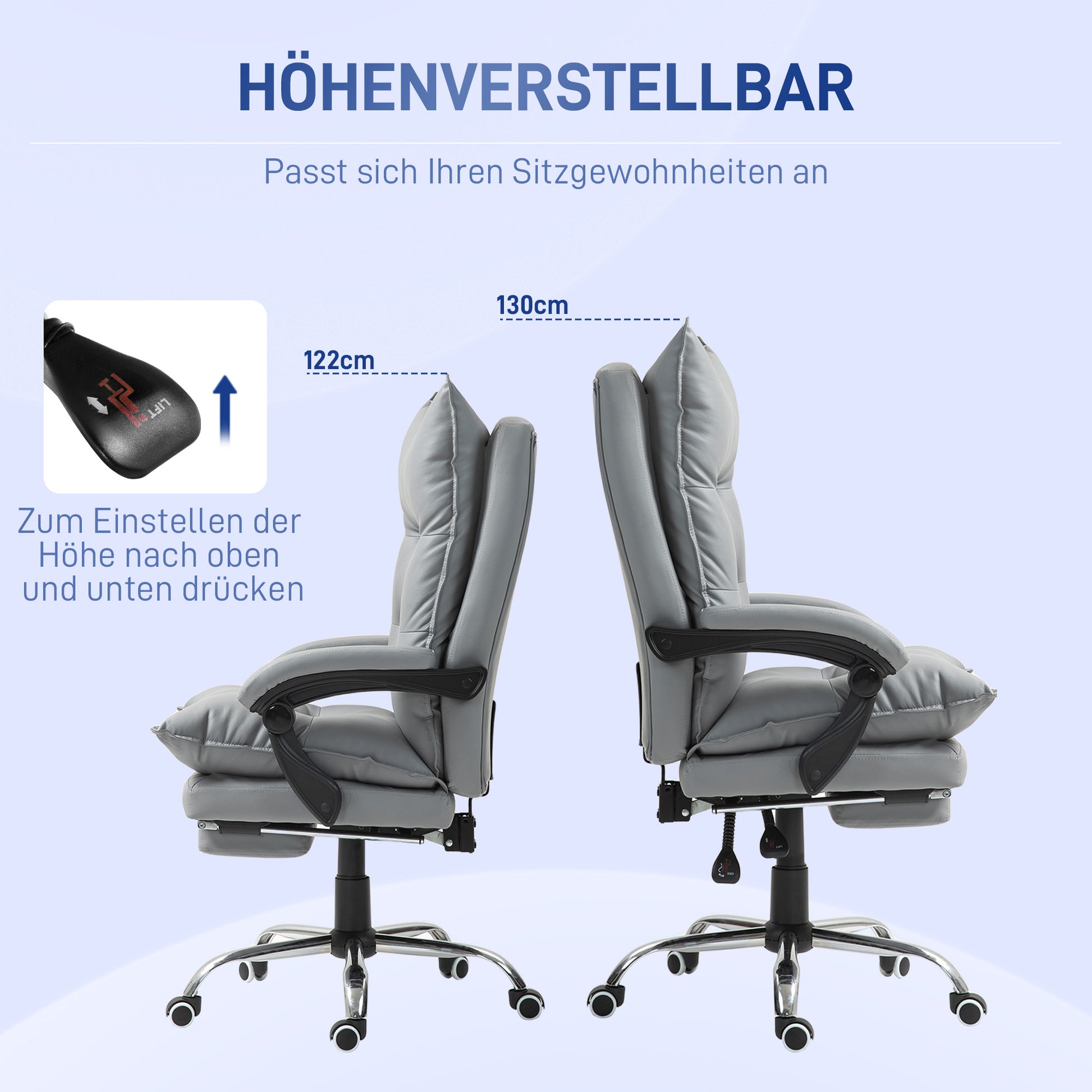 Vinsetto Ergonomischer Bürostuhl, verstellbare Sitzhöhe, neigbare Rückenlehne, Kunstleder, Hellgrau