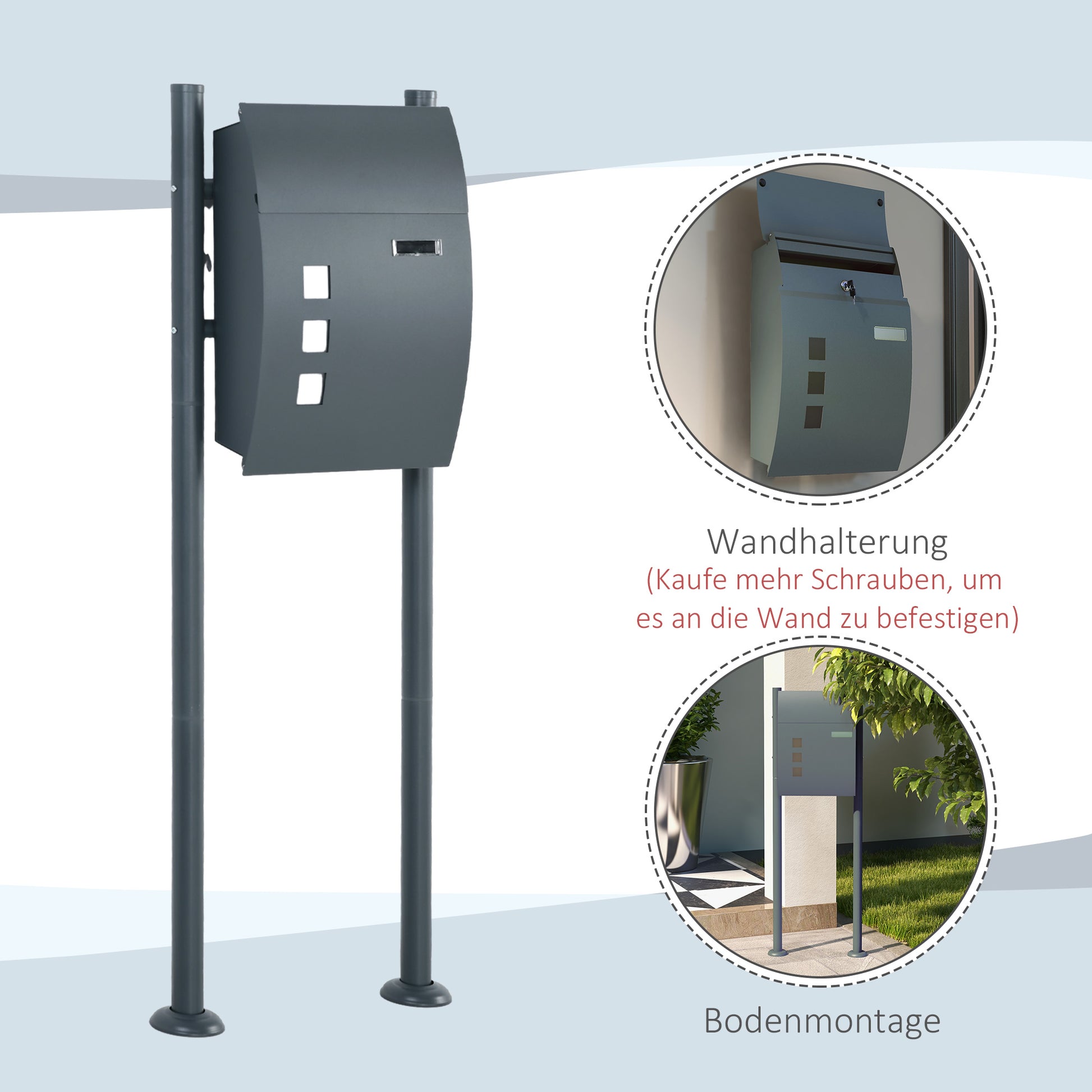 HOMCOM Briefkasten Postkasten, Verriegelung, Standbriefkasten, 2 Schlüssel, Stahl, 44 cm x 15 cm x 114 cm, Grau