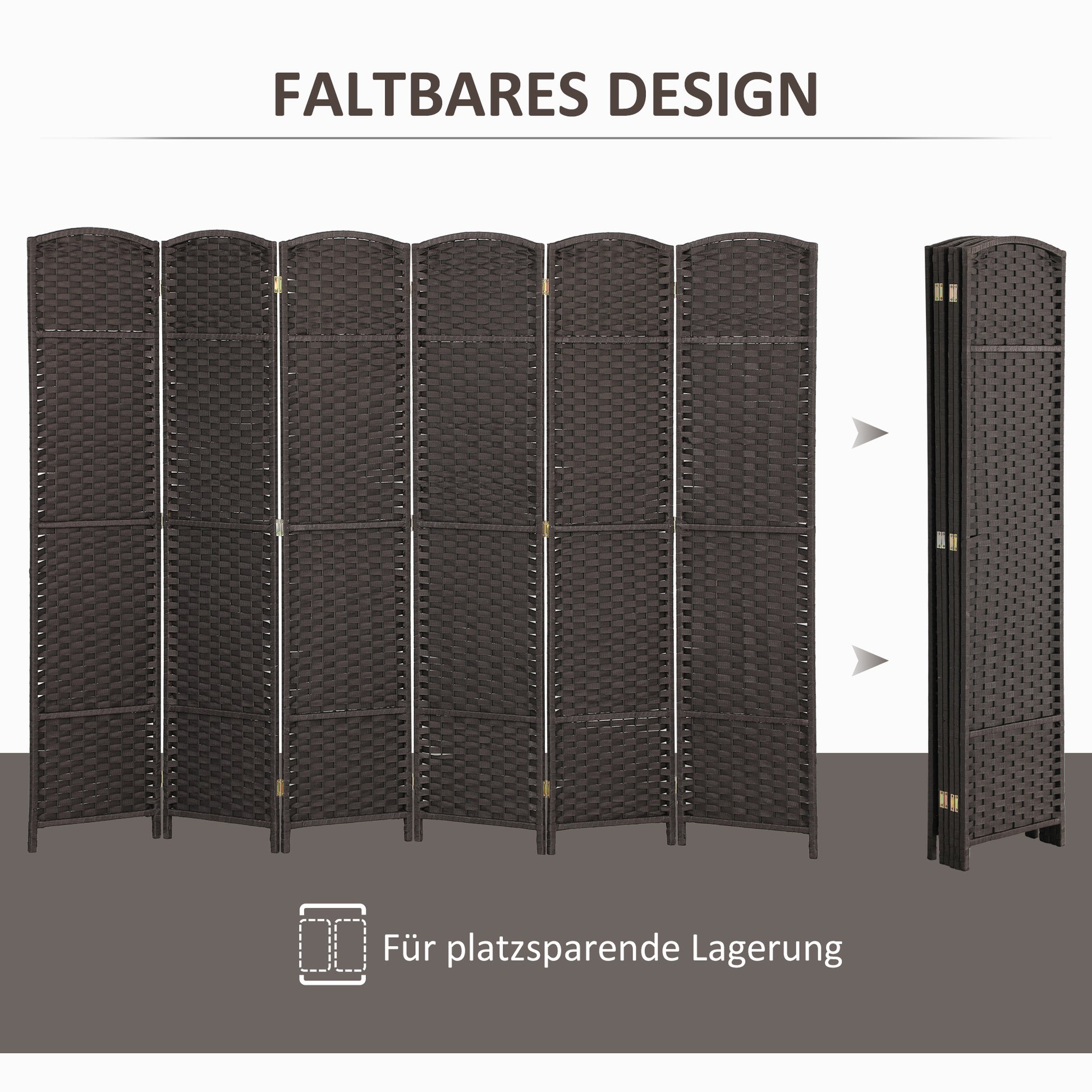 HOMCOM 6-teiliger Raumtrenner, Faltbarer Sichtschutz, Sichtschutzwand für Wohnzimmer, Schlafzimmer, Homeoffice, Braun