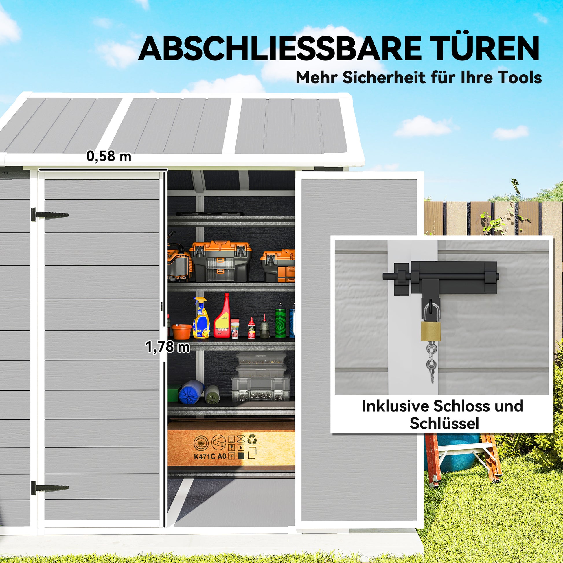 Outsunny Gartenhaus, Gartenschuppen mit Fenster, verschließbare Tür, Kunststoff, Grau