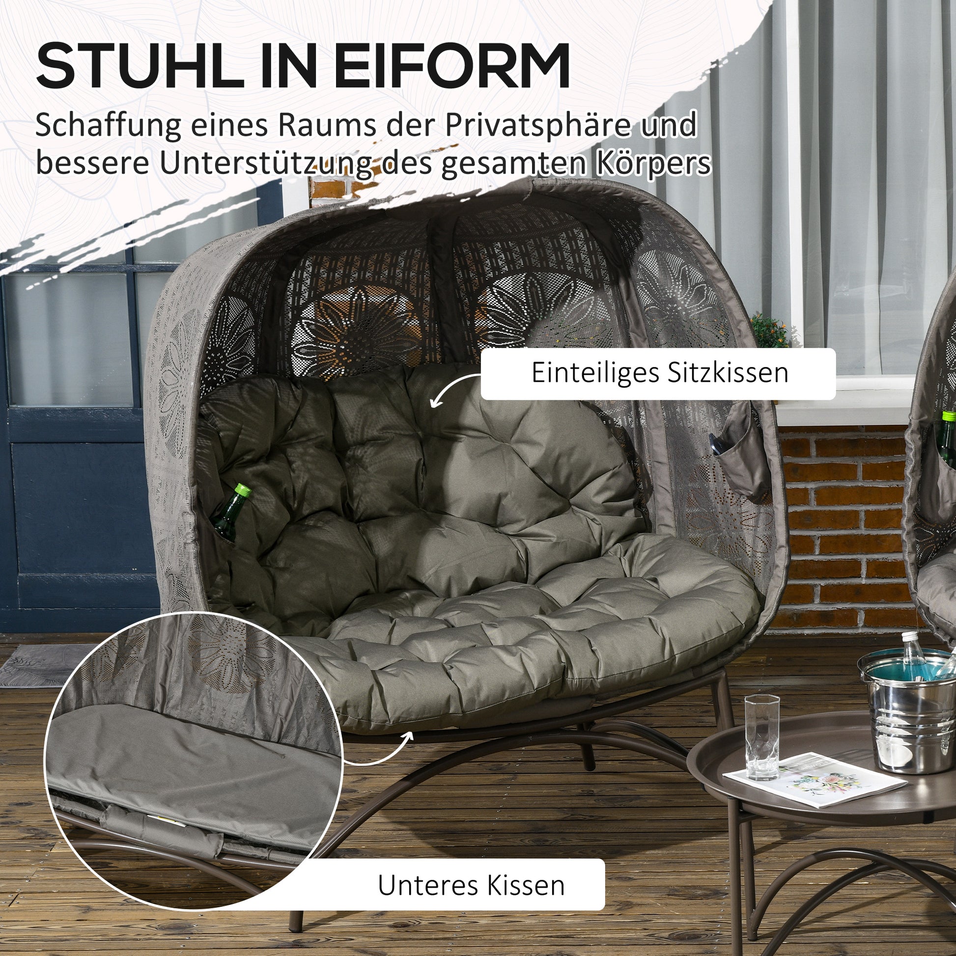 Entspannen Sie stilvoll im Freien auf diesem Korbsessel-Set von Outsunny. Den moderna designen och den högvärdiga materialets utrustning Ihre Sitzecke zum Hingucker. Nutzen Sie den Tisch bei Wunsch auch als Hocker für ein Extra an Komfort. Die geschwungene Sitzschale lädt zum Relaxen ein, unterstützt von weichen Sitz- und Rückenkissen. Praktisch: Das Set ist faltbar und leicht zu verstauen. Das stabile Metallgestell bietet sicheren Halt. Gönnen Sie sich puren Komfort im Freien!