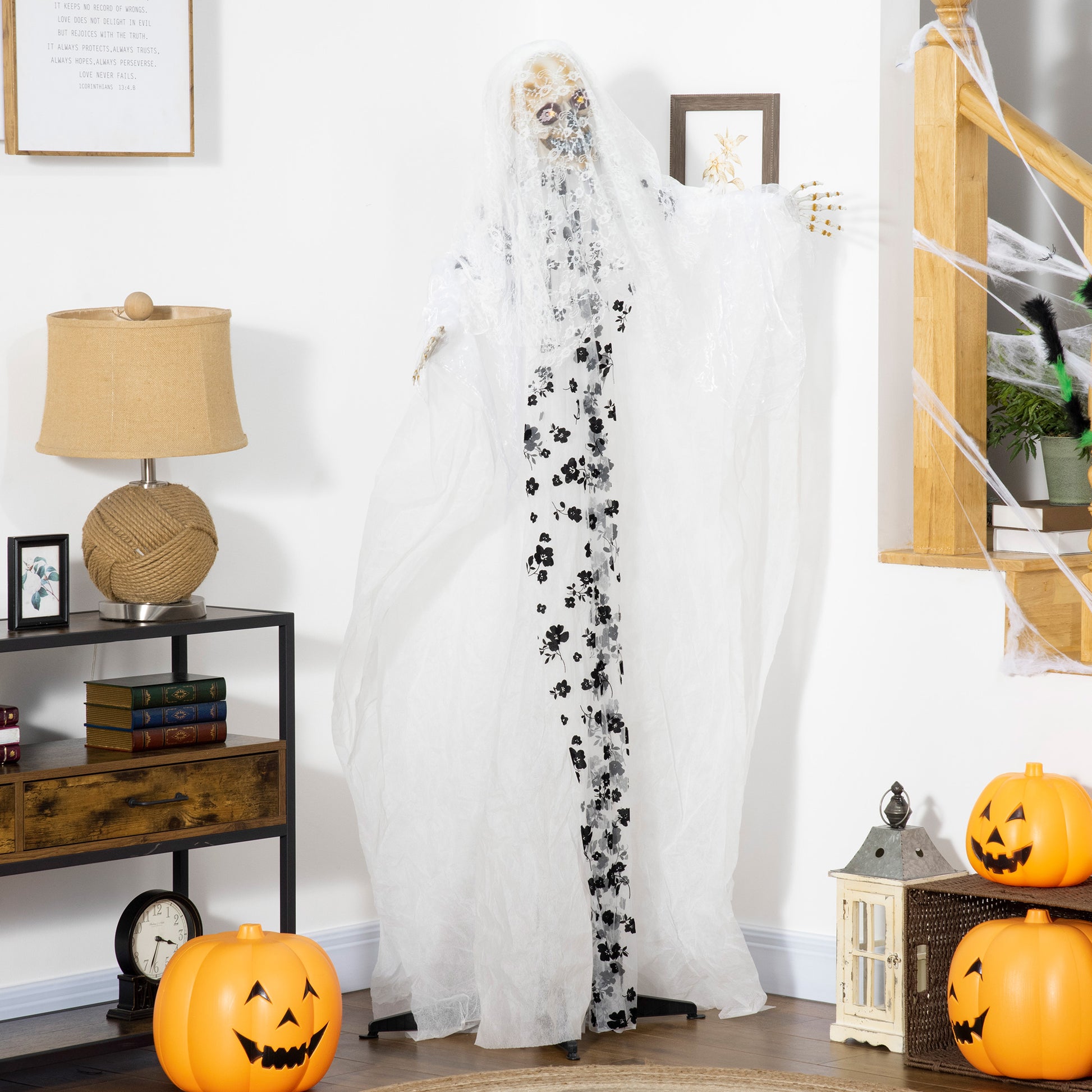 Outsunny Halloween-Dekoration Geisterbraut, Schreie & Augenleuchten, bewegungsaktiviert, 170cm groß, Inomhus