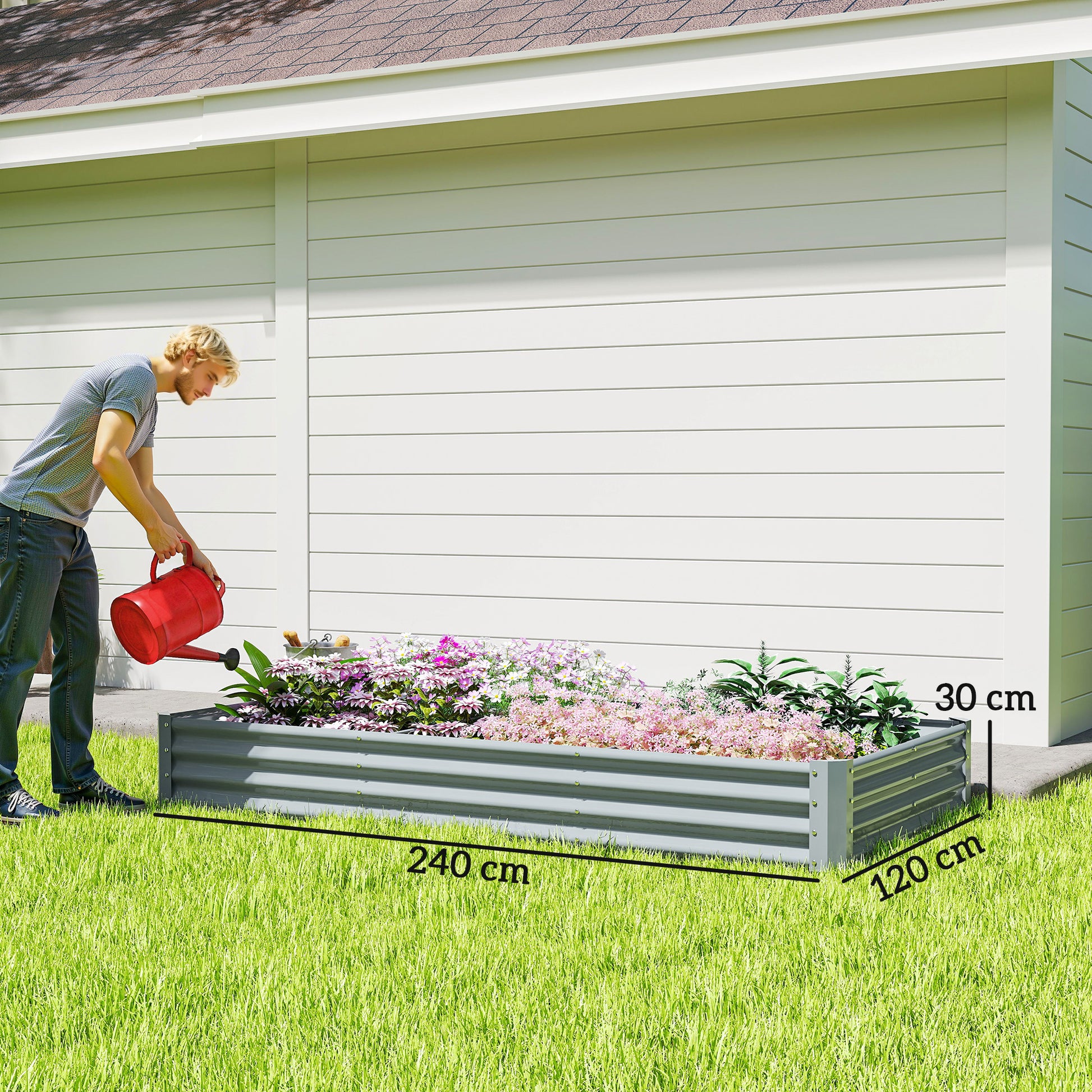 Erleben Sie Gartenarbeit neu mit dem Outsunny Hochbeet für Garten. Mit einer Tiefe von 30 cm bietet dieses Kräuterhochbeet Platz für 828 L Erde, ideal für mittelgroße bis tief wurzelnde Pflanzen. Der galvanisierte Stahl mit Pulverbeschichtung är rostresistent och extrem fuktig. Stabiliserande Innenbalken und Eckverstärkungen sowie ein offener Boden mit optimaler Drainage des Blumenbeets unterstützen kräftiges Pflanzenwachstum.