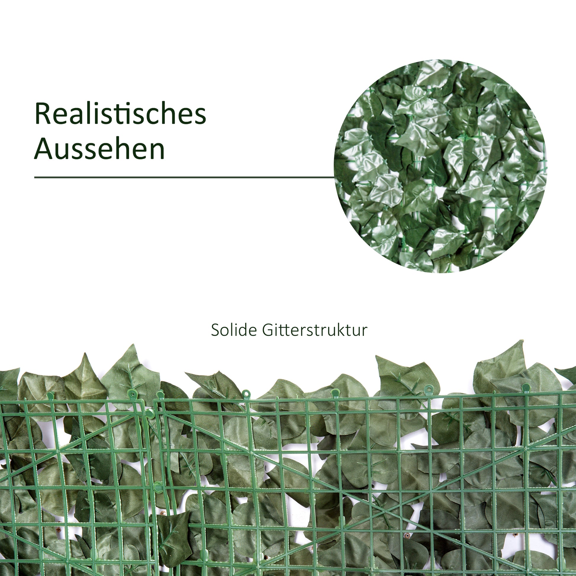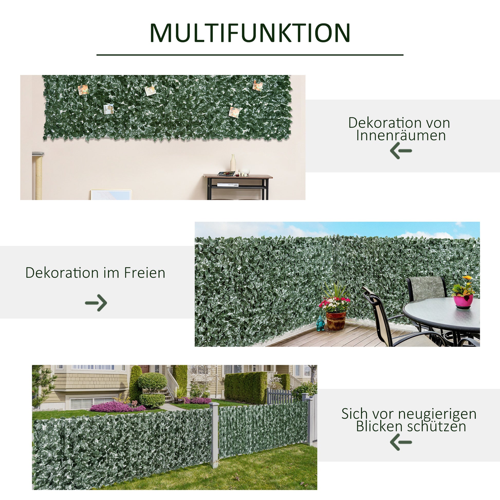 Outsunny Künstlicher Hecken Sichtschutz, UV Geschützt Sichtschutz, Grün Balkon Sichtschutz, Zaun Sichtschutzgitter mit Blättern, Hecken Zaun, WandKünstliche 300 x150 cm för Garten Hochzeit
