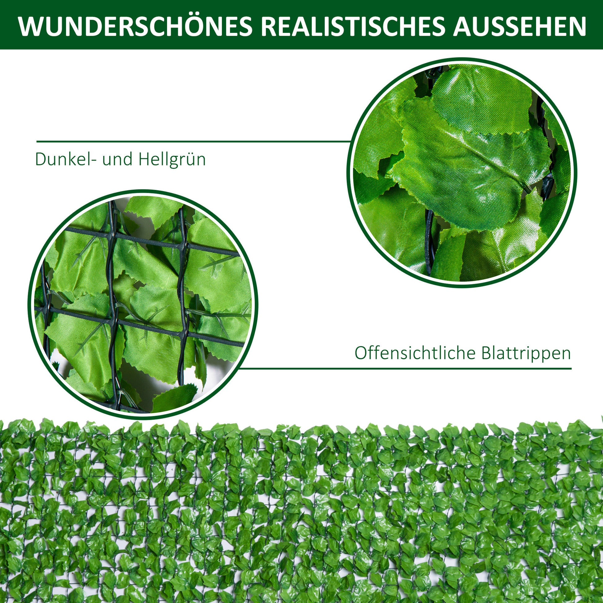Outsunny Künstlicher Hecken-Sichtschutz, UV-geschützt, Sichtschutzgitter mit Blättern, Hecken-Zaun, 300 x 150 cm, Grün