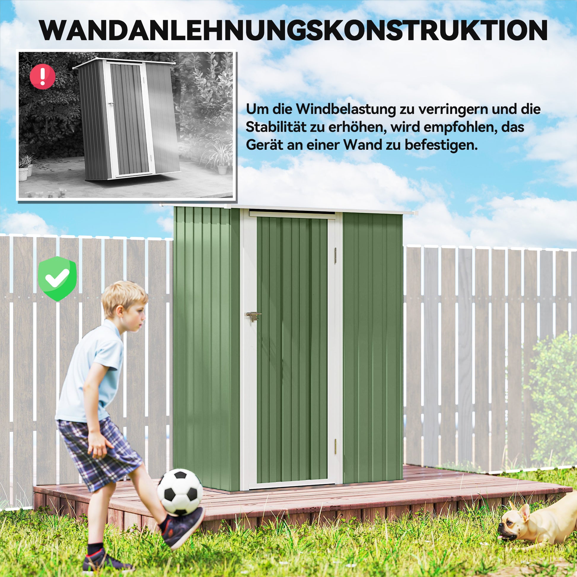 Dieser kleine Gartenschuppen av Outsunny är en Muss för Ihr Zuhause! Er ist stabil and whiterungsresistent, sodass are Ihre Gartengeräte sicher vor jedem Wetter schützt. Dank eines geneigten Daches sammelt sich kein Wasser, sodass das Innere immer trocken bleibt. Mit 186 cm x 130 cm Innenmaßen haben Sie reichlich Platz für viele Gartenschuppen . Eine große, verriegelbare Tür bietet zusätzliche Sicherheit vor Tieren und Regen. Achtung: Ein Bodenfundament ist NICHT im Lieferumfang enthalten.