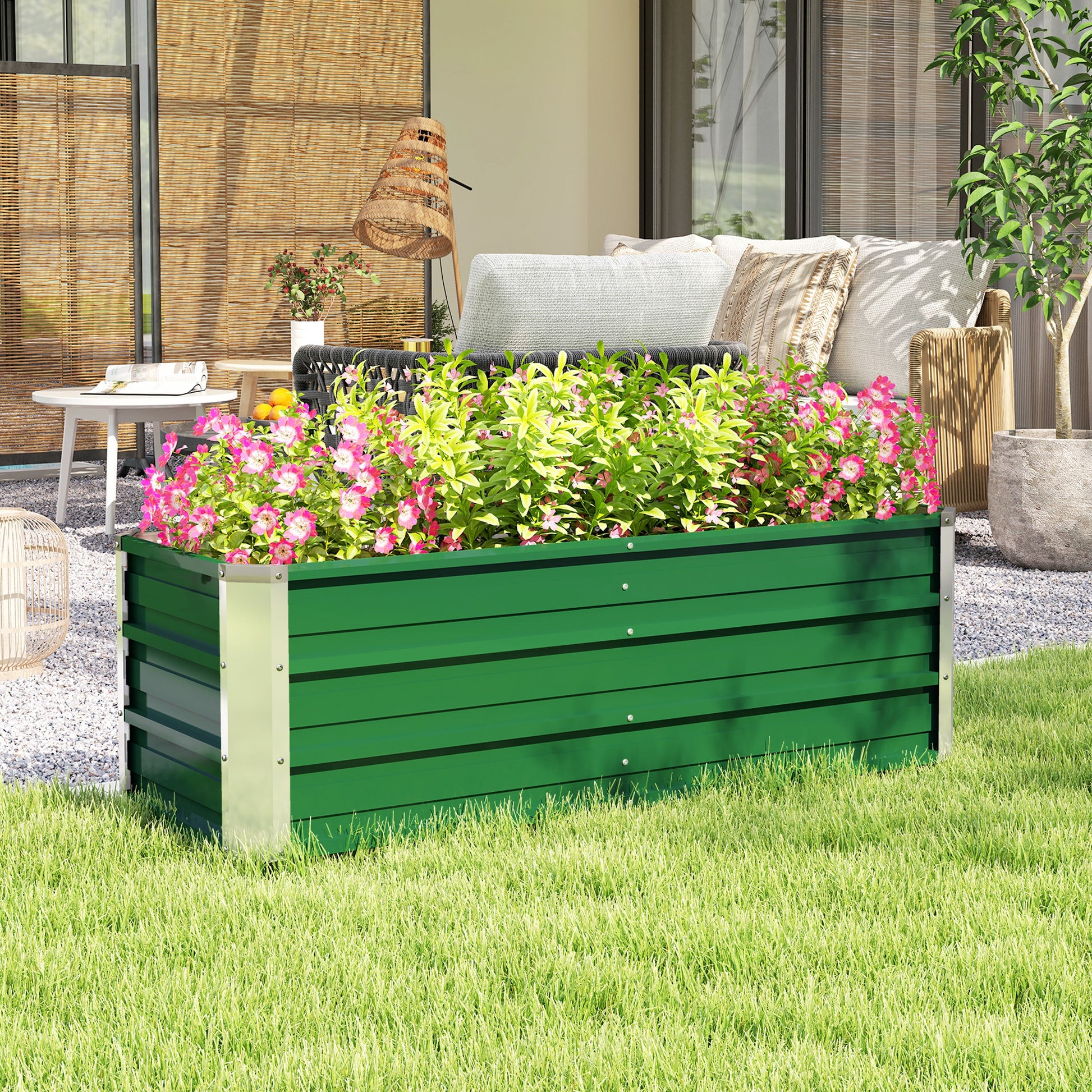 Outsunny Metall-Hochbeet, 2 separata Pflanzbereiche, offener Boden, einfacher Aufbau, 125 x 47 x 40cm, Grün