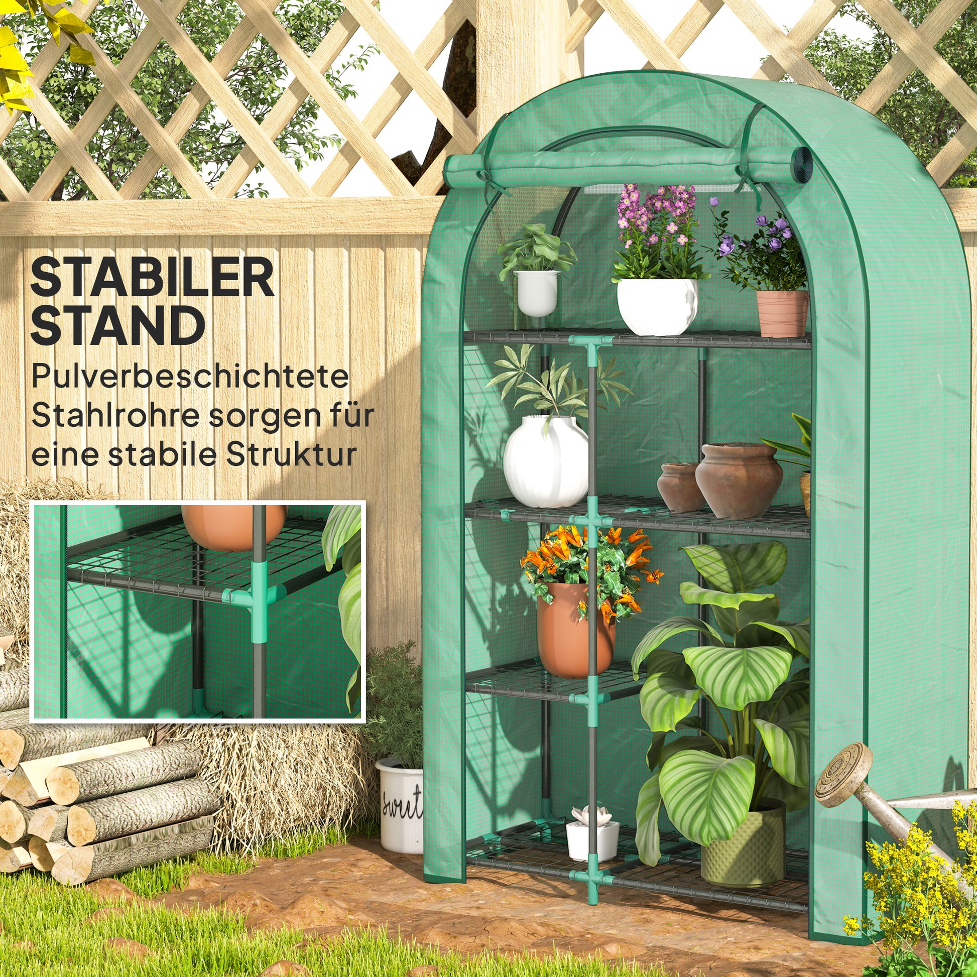 Outsunny Mini-Gewachshaus, 4-stufiges Gewächshaus mit Kunststoff-Plane, tragbar, Rolltür, 100 x 45 x 160 cm, Grün