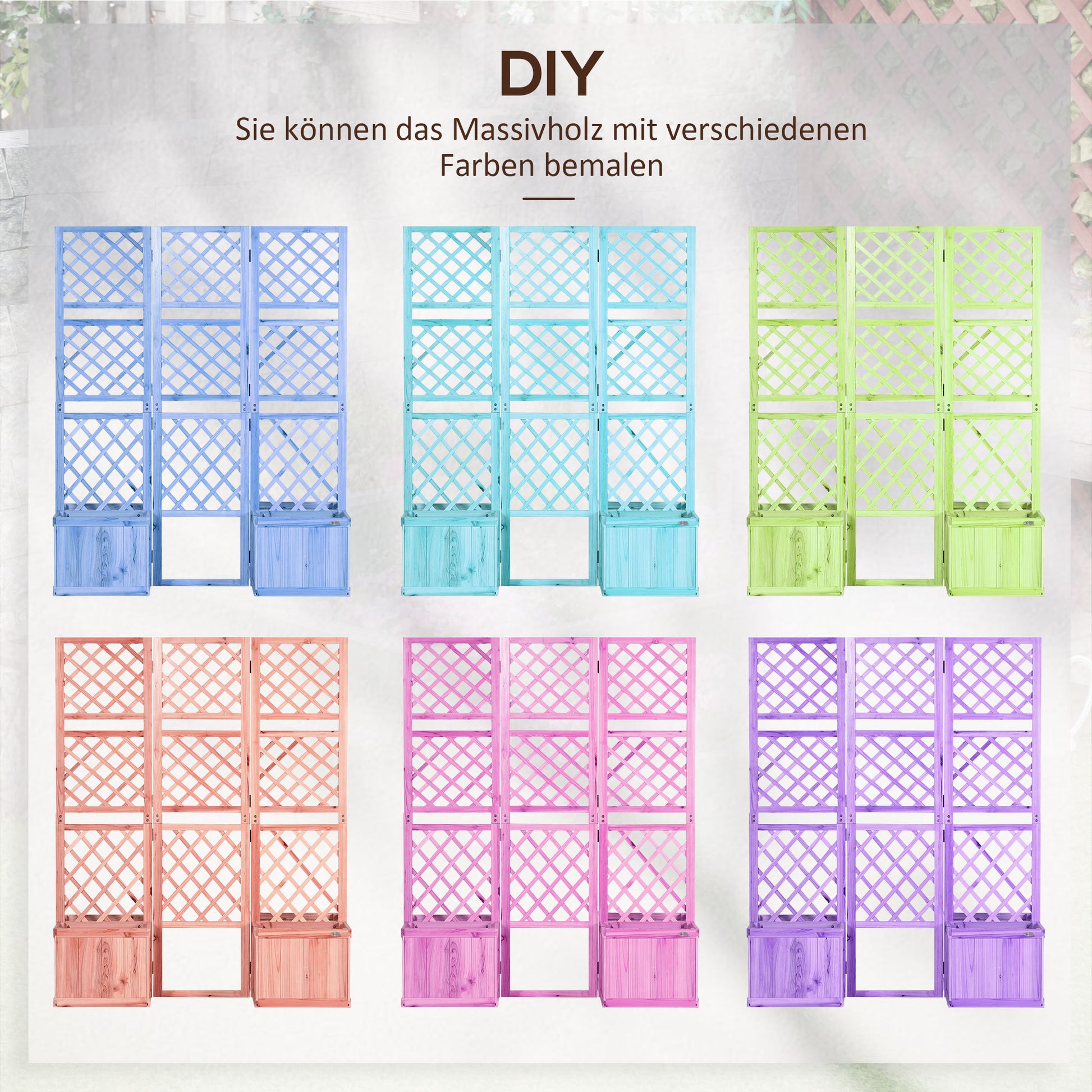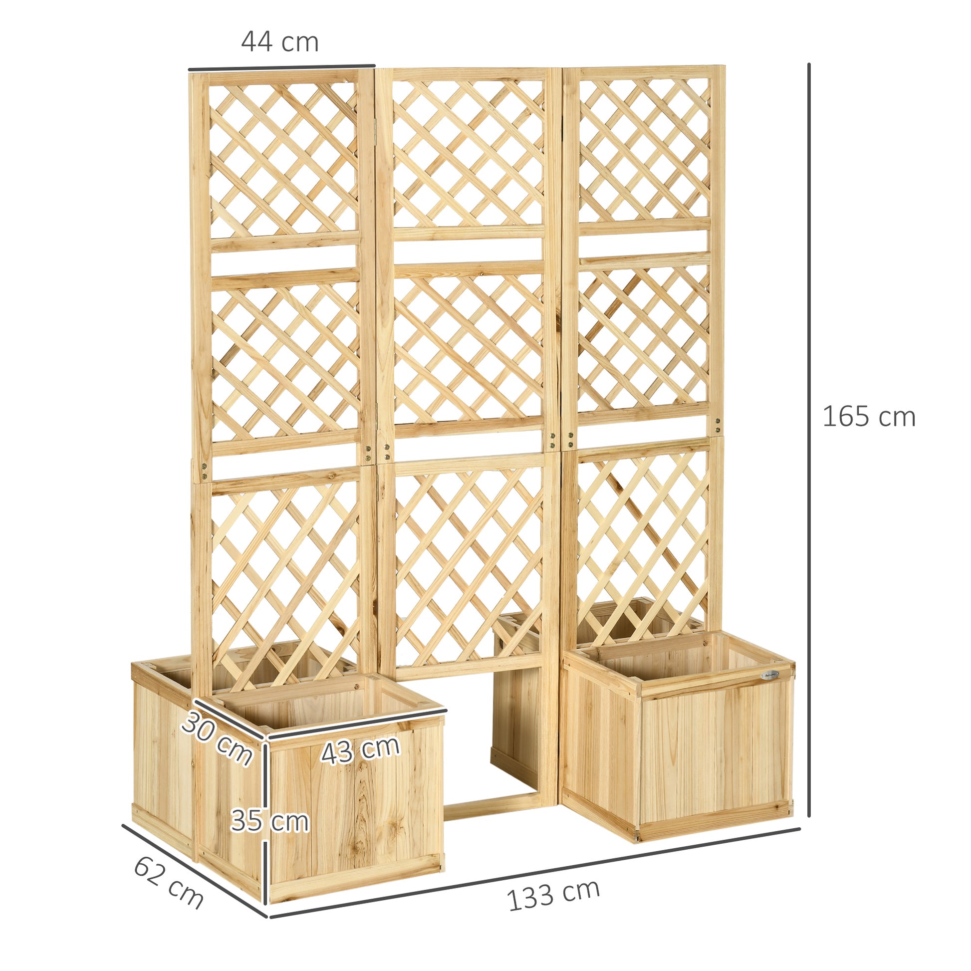 Outsunny Paravent, Sichtschutz für Garten, dreifach klappbar, 4 Blumenkästen, Massivholz, Naturfarbe, 133 x 62 x 165 cm