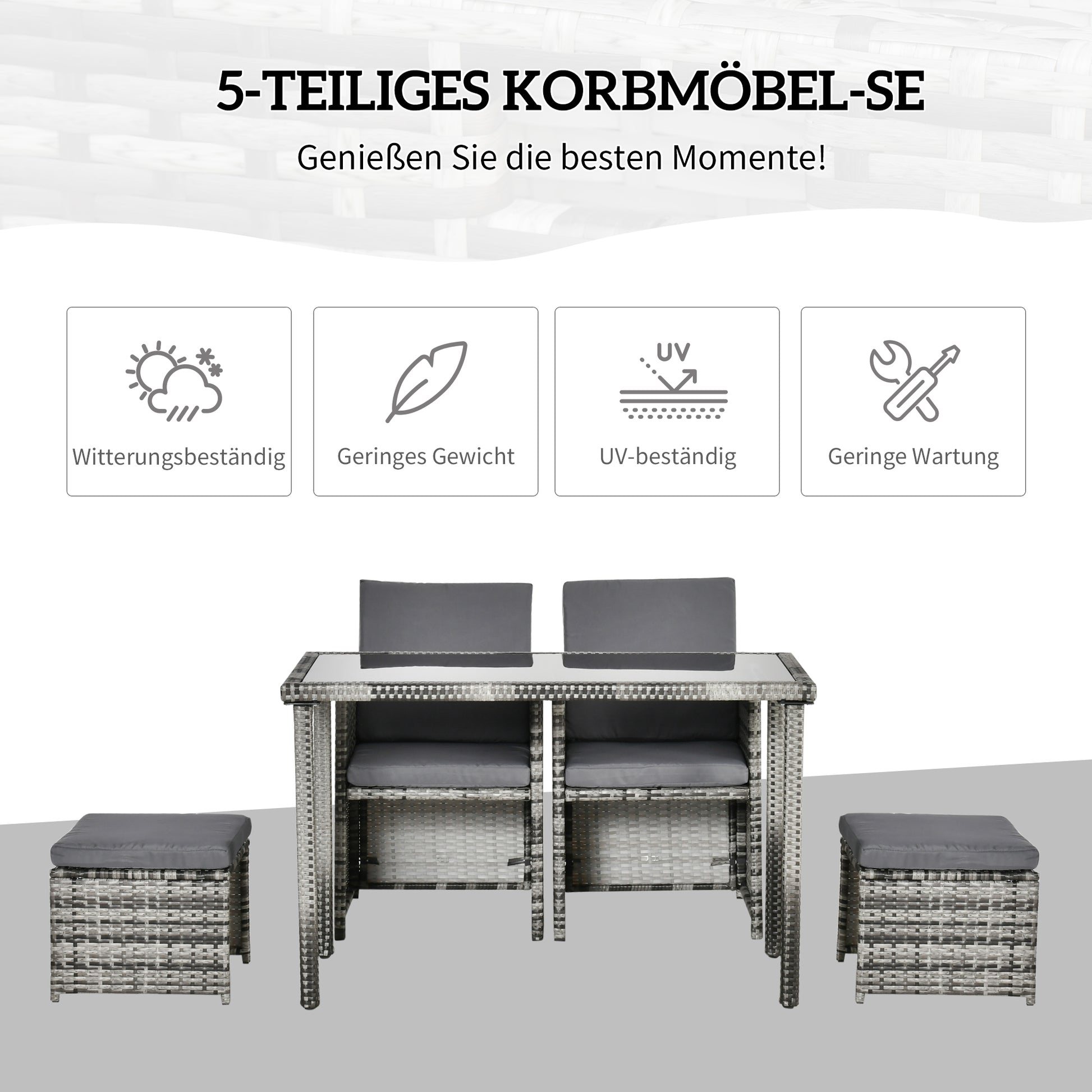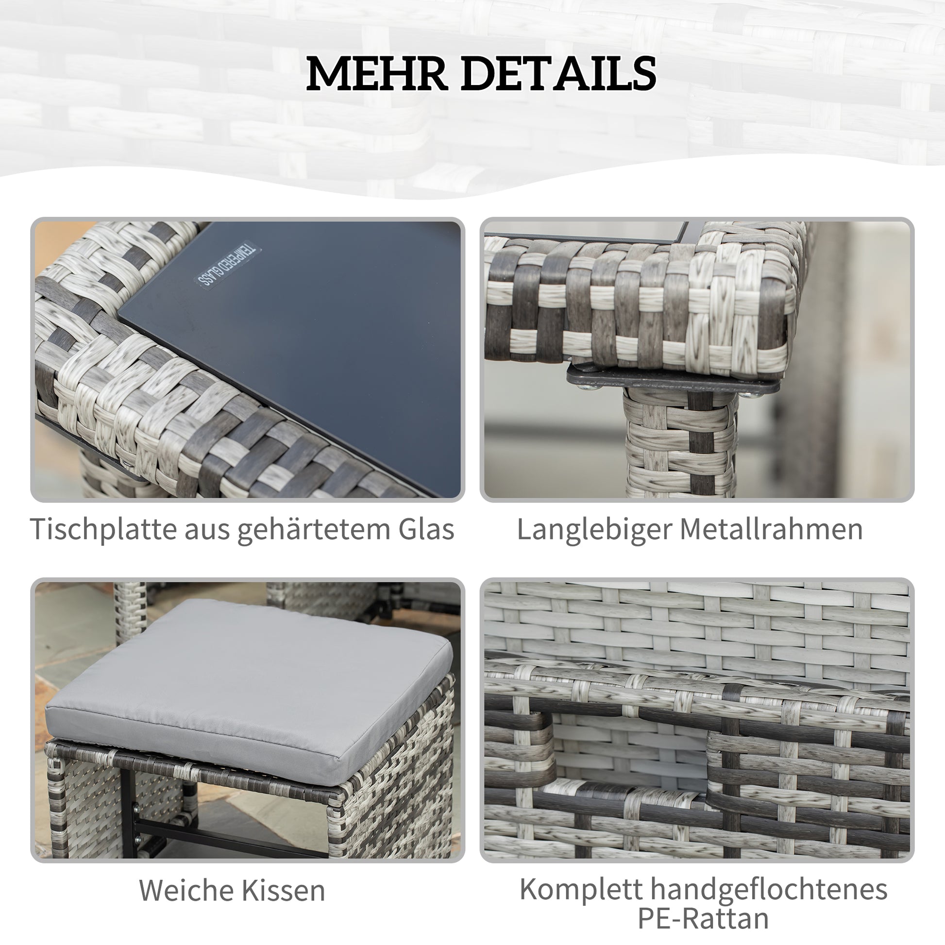 Outsunny Polyrattan Sitzgruppe für 4 Personen Essgruppe Gartenset Garnitur mit Kissen, Grau