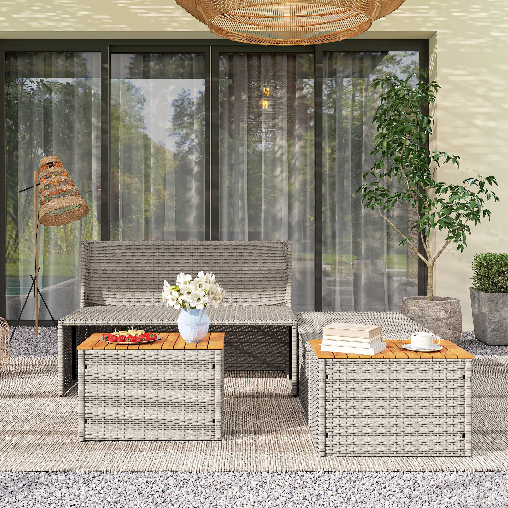 Outsunny Polyrattan Sonnenliege für 2 Personen Doppelliege mit Fußhocker Staurum Auflagen 125x114x72,5 cm Grau