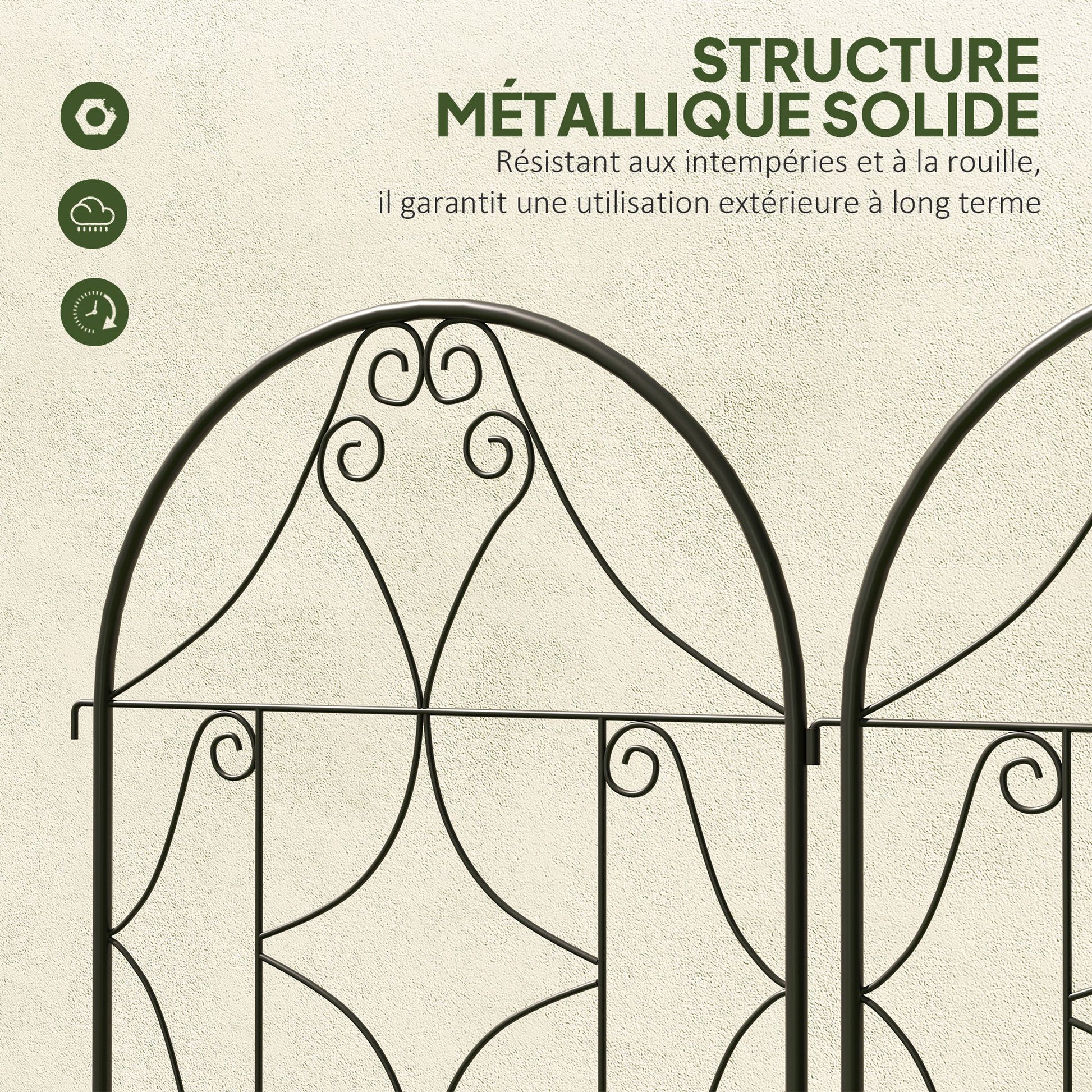 Gestalten Sie Ihren Garten neu mit dem Outsunny Rosenitter! Dieses Rosenspalier bietet reichlich Platz für Kletterpflanzen und sicheren Halt selbst bei Wind. Mit einem rostfreien Metallrahmen und ansprechenden unregelmäßigen Mustern kombiniert dieses Rosenrankgitter functionale Pflanzenstütze mit dekorativem Sichtschutz. Perfekt, um Eleganz in Ihren Garten zu bringen.