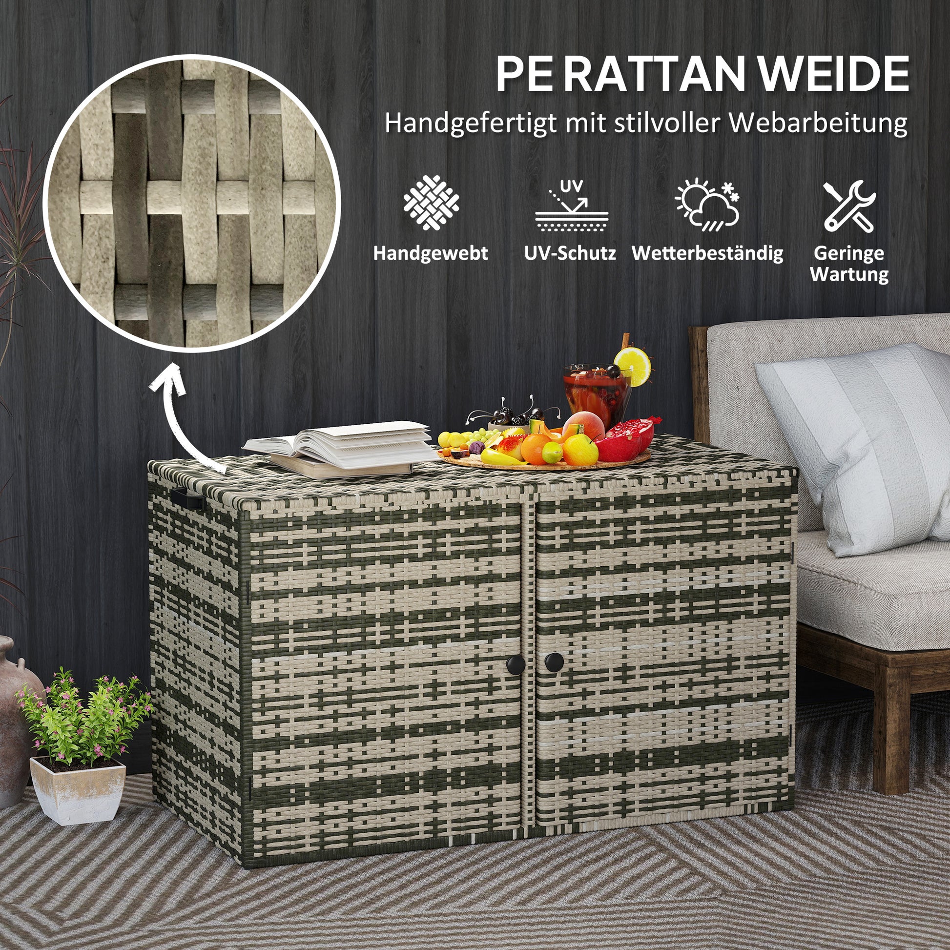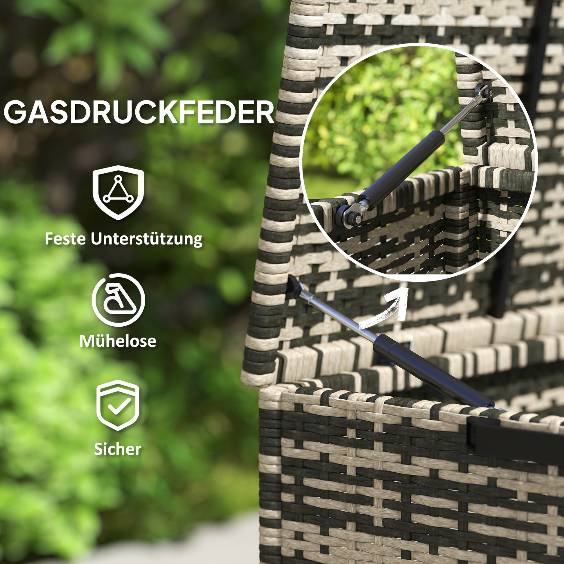 Outsunny Rattan Auflagenbox 350L 2-Ebenne Kissenbox mit Deckel Hebestangen Tragegriffe 118 x 57 x 69 cm Mischgrau